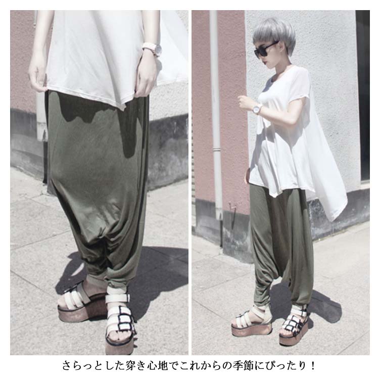 | ゆるっとしたシルエットでこなれ感を演出♪この抜け感がお洒落に見える秘密です。 履きやすく動きやすいのも嬉しいポイント★ 身頃の自然タックがとても個性的で格好いい。 さらっとした穿き心地でこれからの季節にぴったり! | |