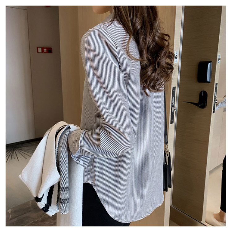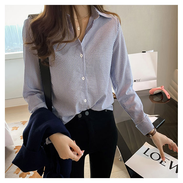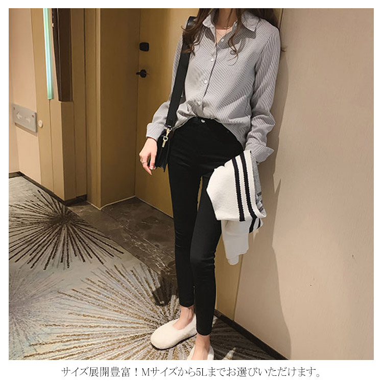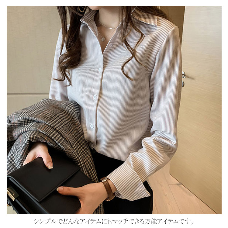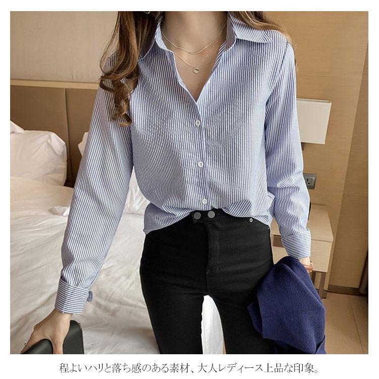 M~5Lまで! シャツ カジュアル ブラウス ストライプ レディース 長袖 シャツブラウス ゆったり 体型カバー ボーダー オシャレ 春夏 秋冬 オールシーズン 大きいサイズ キレイめ 20代 30代 40代 50代