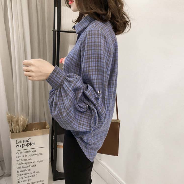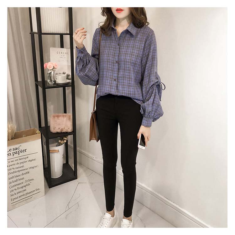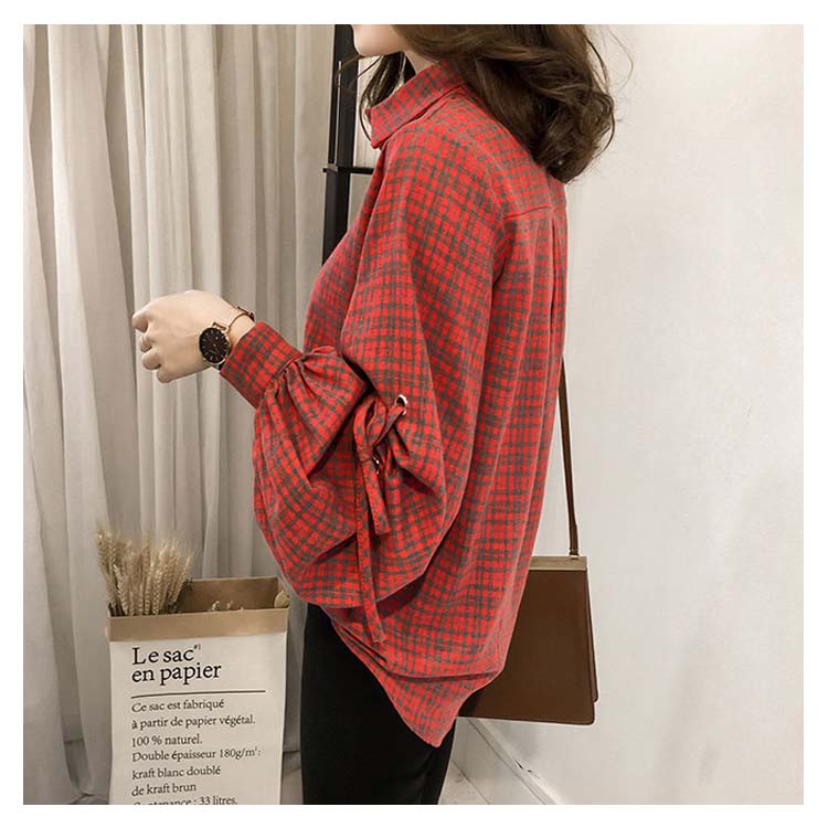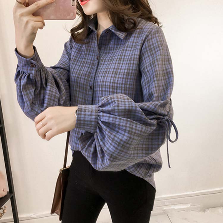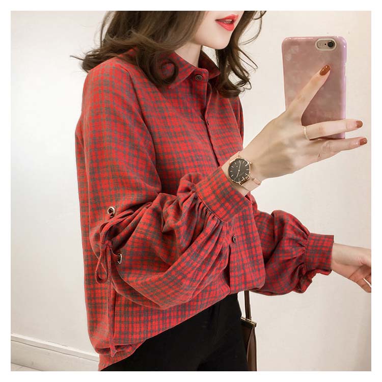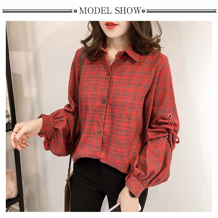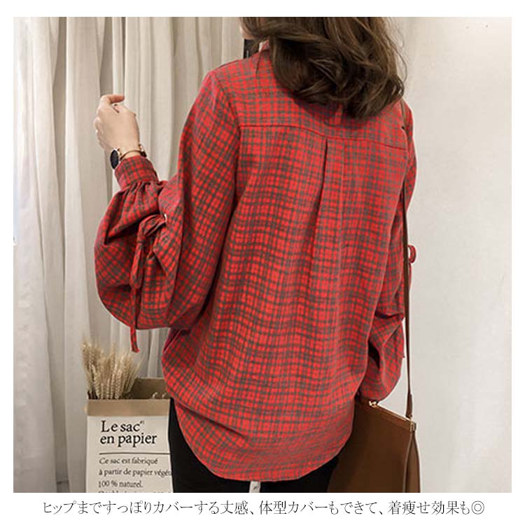ふんわりボリュームが可愛い♪ チェック柄 ブラウス シャツ シャツブラウス レディース 長袖 バルーンスリーブ オシャレ リボン 可愛い 厚手 大きいサイズ 大人 学生 通学 通勤 お出かけ デート トレンド おしゃれ カジュアル キレイめ