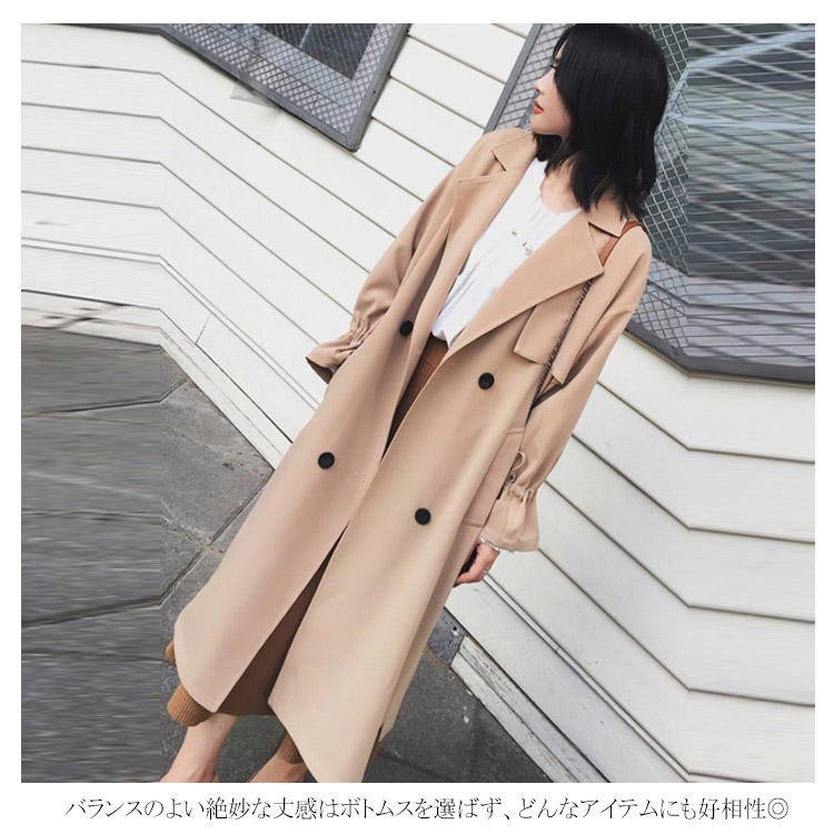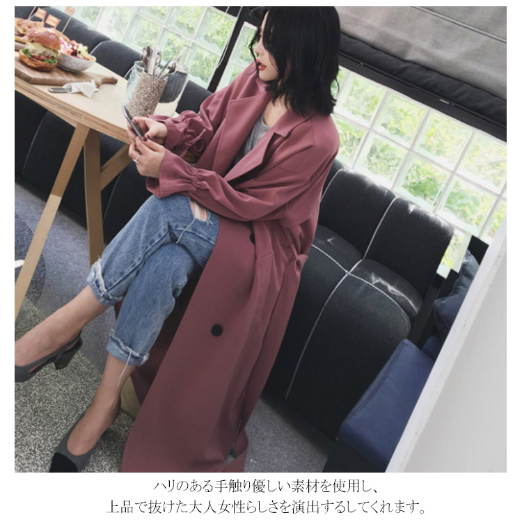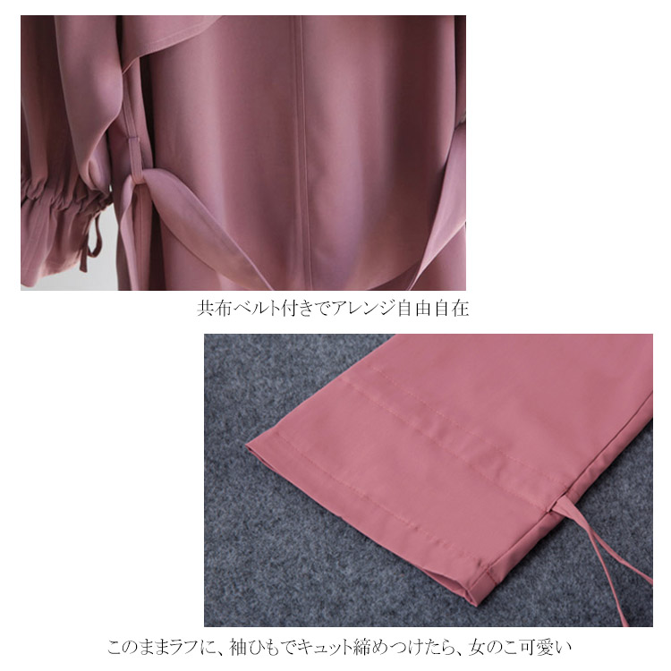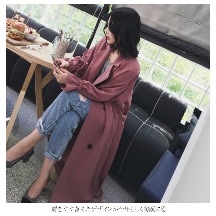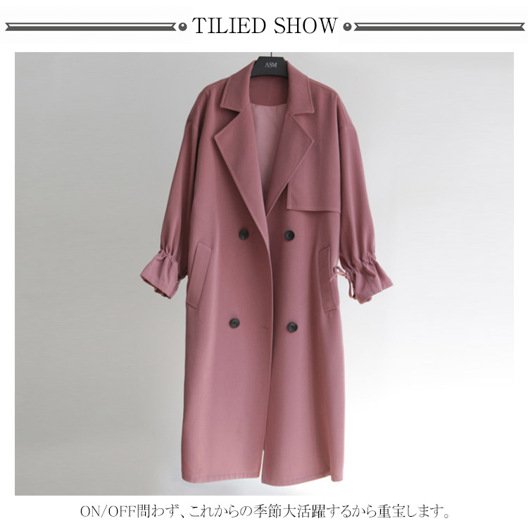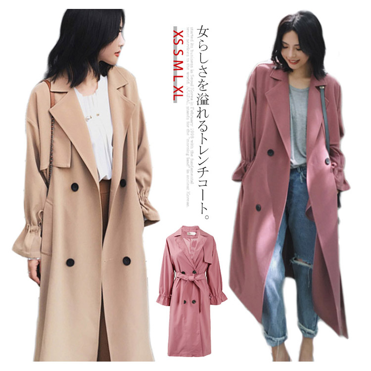 トレンチコート ロングコート レディース パフスリーブ リボン ロング丈 ドロップショルダー ゆったり ベルト付き アウター スプリングコート 大きいサイズ 小さいサイズ 秋物 冬物 通勤 お出かけ お呼ばれ 無地 可愛い