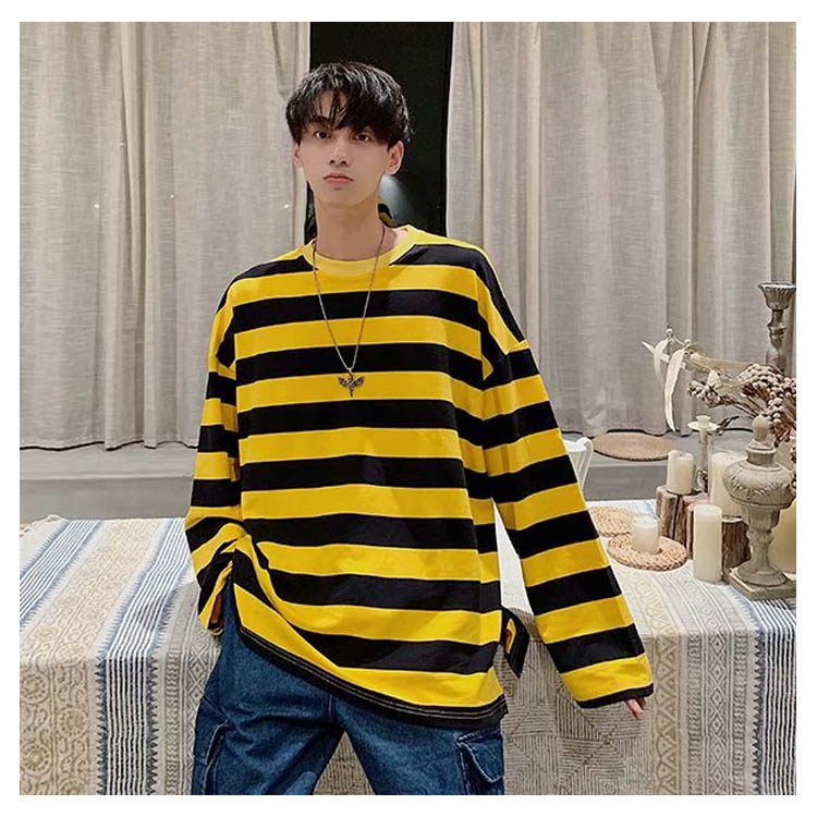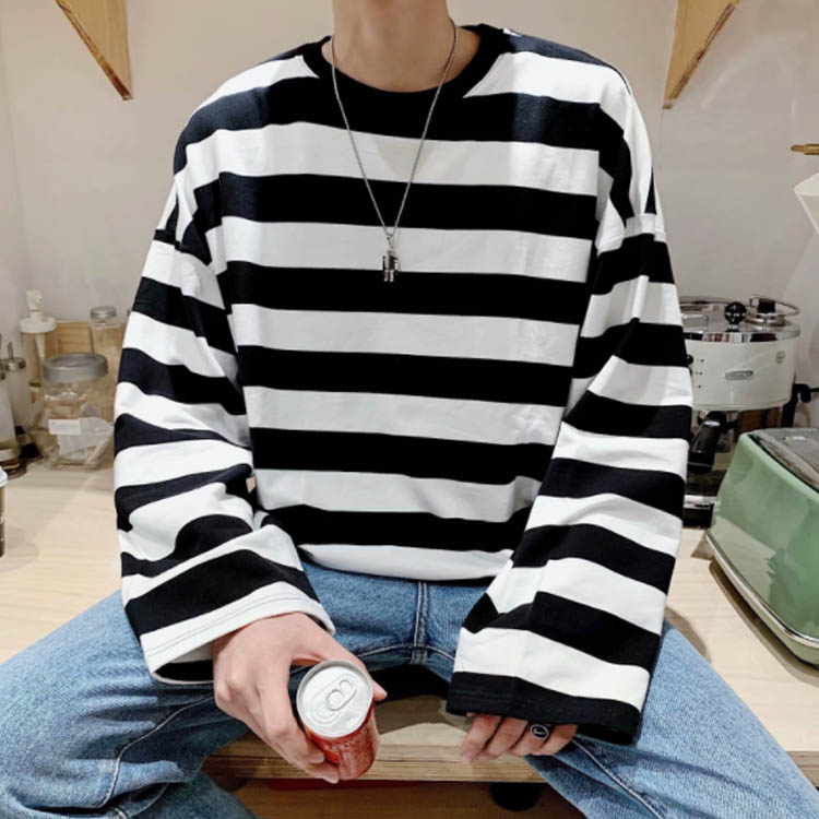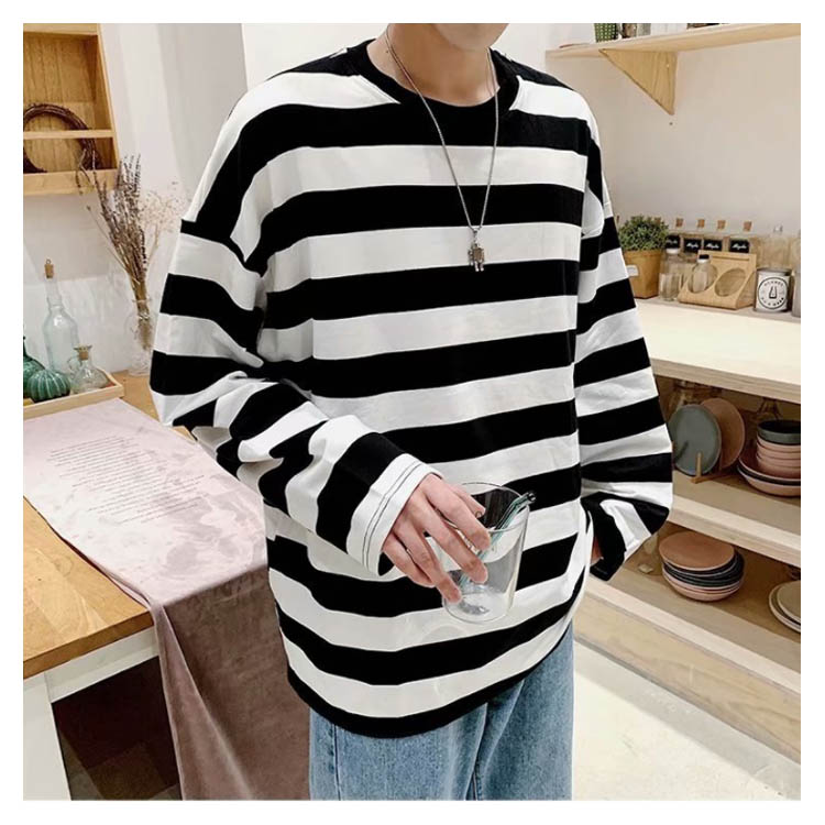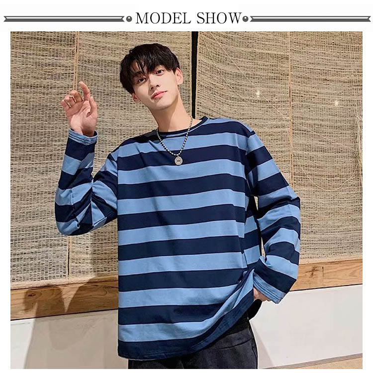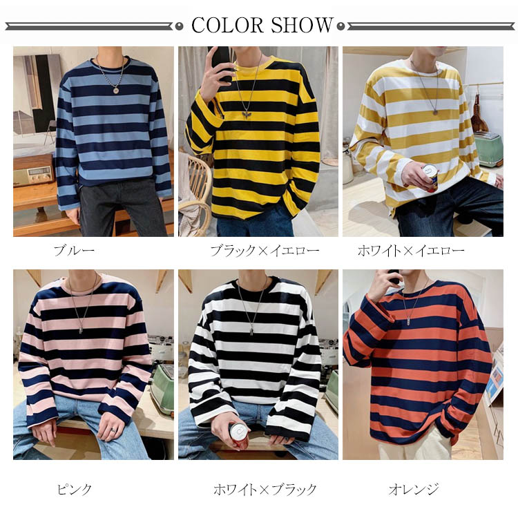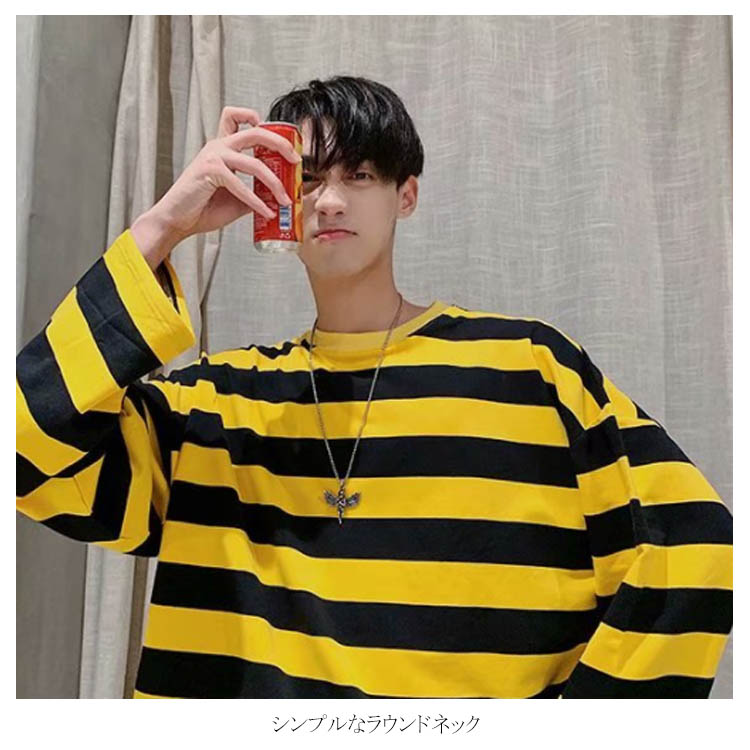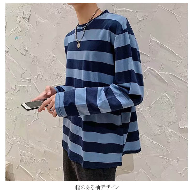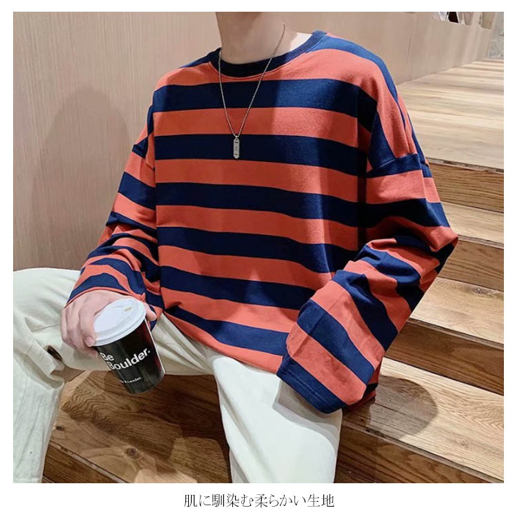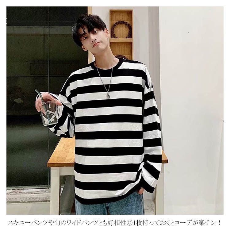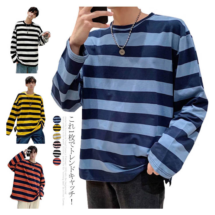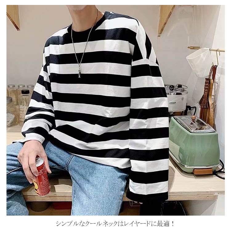 送料無料 オーバーサイズ Tシャツ 長袖Tシャツ ボーダー柄 メンズ ゆったり 大きいサイズ ロンT プルオーバー カットソー クルーネック ビッグ ドロップショルダー 太めボーダー インナー Tシャツ ストリート系 レディース 秋 冬 春 トレーナー スウェット トップス