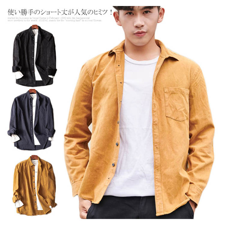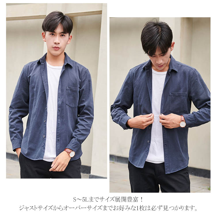送料無料 シャツ カジュアルシャツ メンズ 長袖シャツ 無地 秋冬 春 コットン シャツ 長袖 秋物 秋服 ショート 大きいサイズ シンプル ワイシャツ カラーシャツ ユーズド