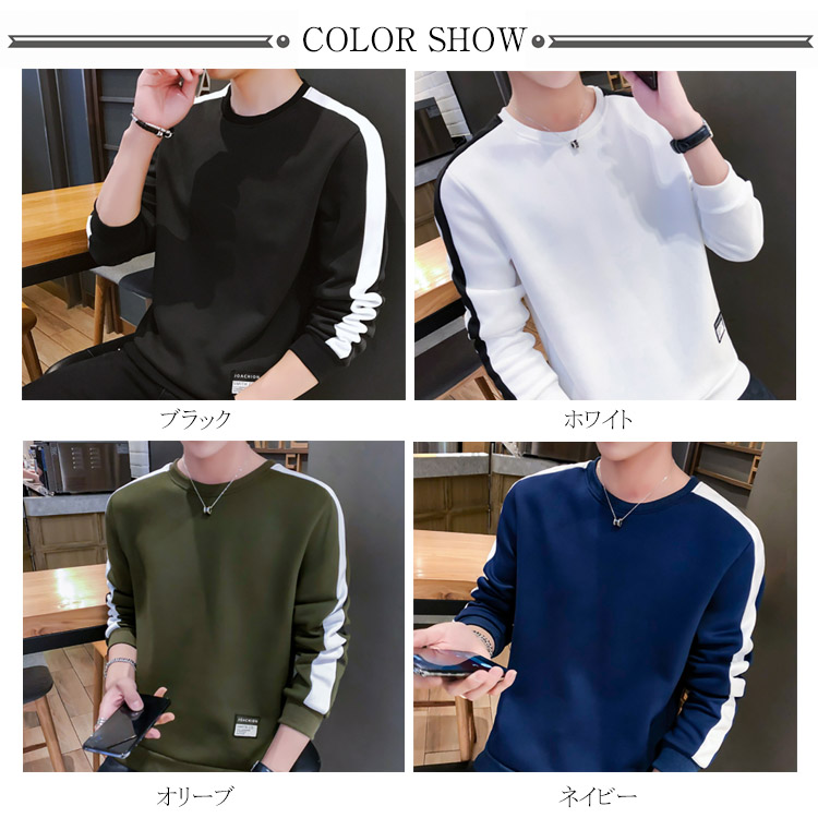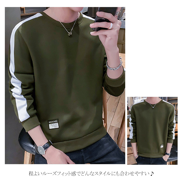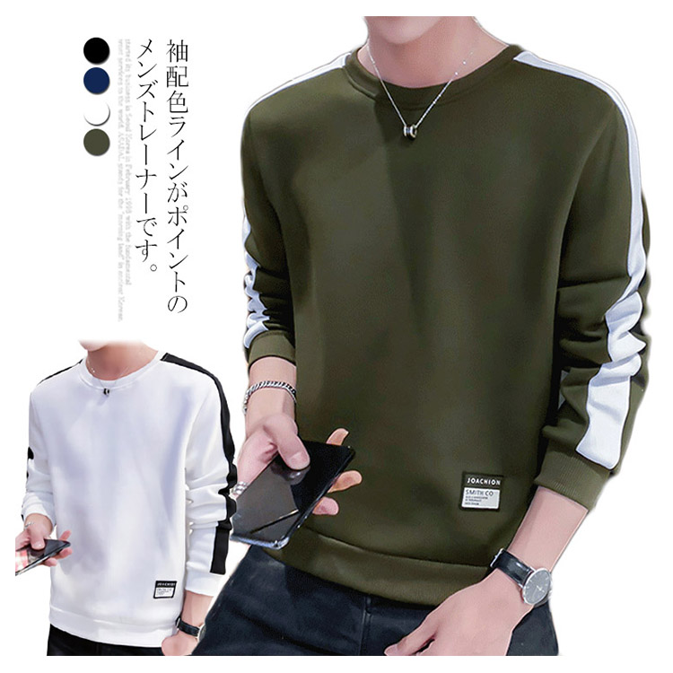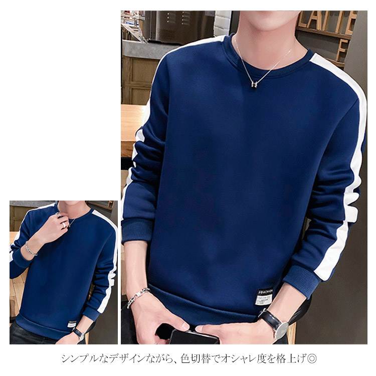 トレーナー 配色 スウェット メンズ トップス パーカー 色切替 ラウンドネック 長袖 バイカラー パーカ カジュアル スポーティー プルオーバー Tシャツ ロンT 秋服 秋冬 モード ゆったり シンプル アメカジ ストリート系 大きいサイズ