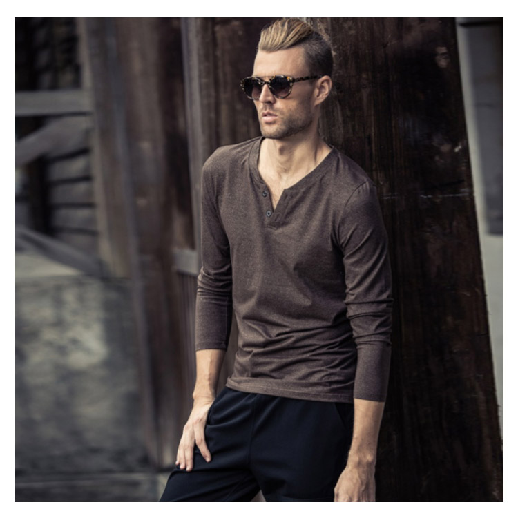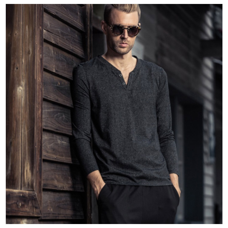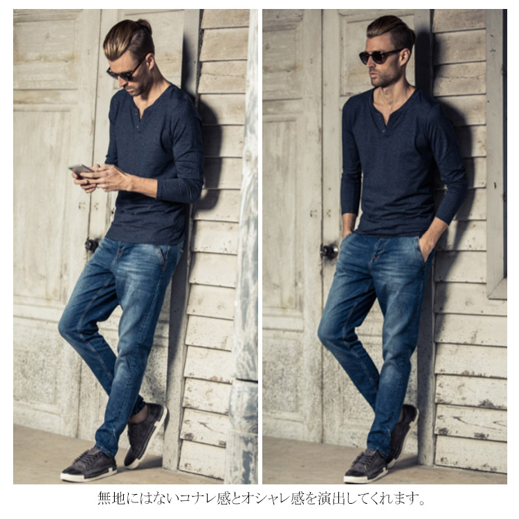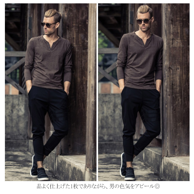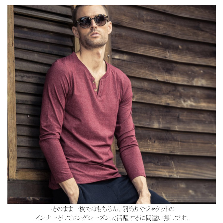 送料無料 長袖Tシャツ ロンT メンズ トップス カットソー 秋服 春 プルオーバー Tシャツ 長袖 インナー 霜降り Vネック ヘンリーネック お兄系 アメカジ ストリート系 カジュアル スリム オシャレ