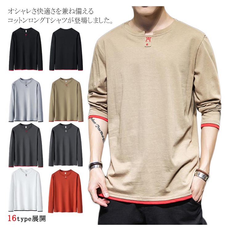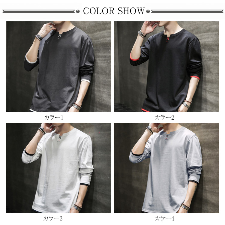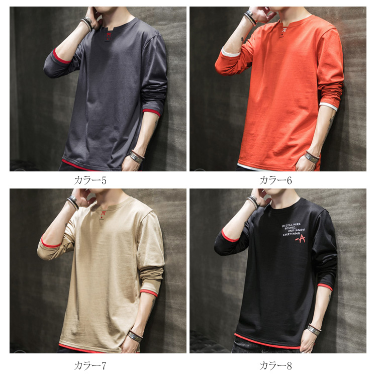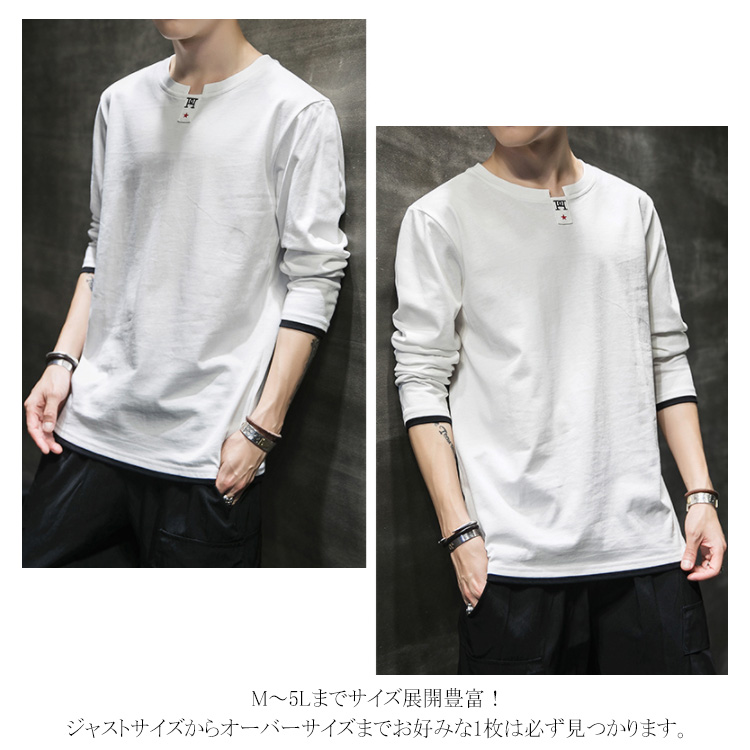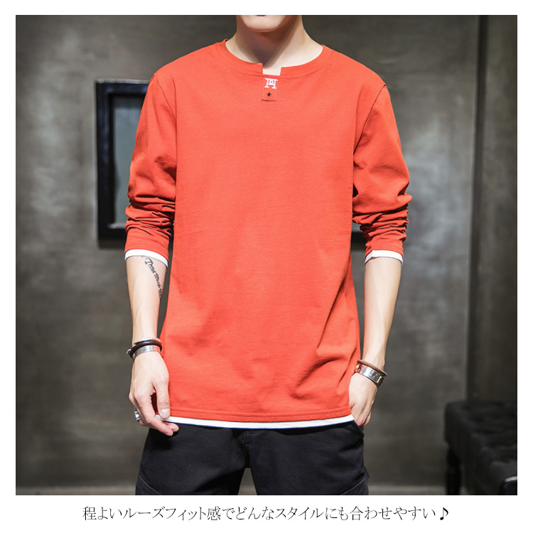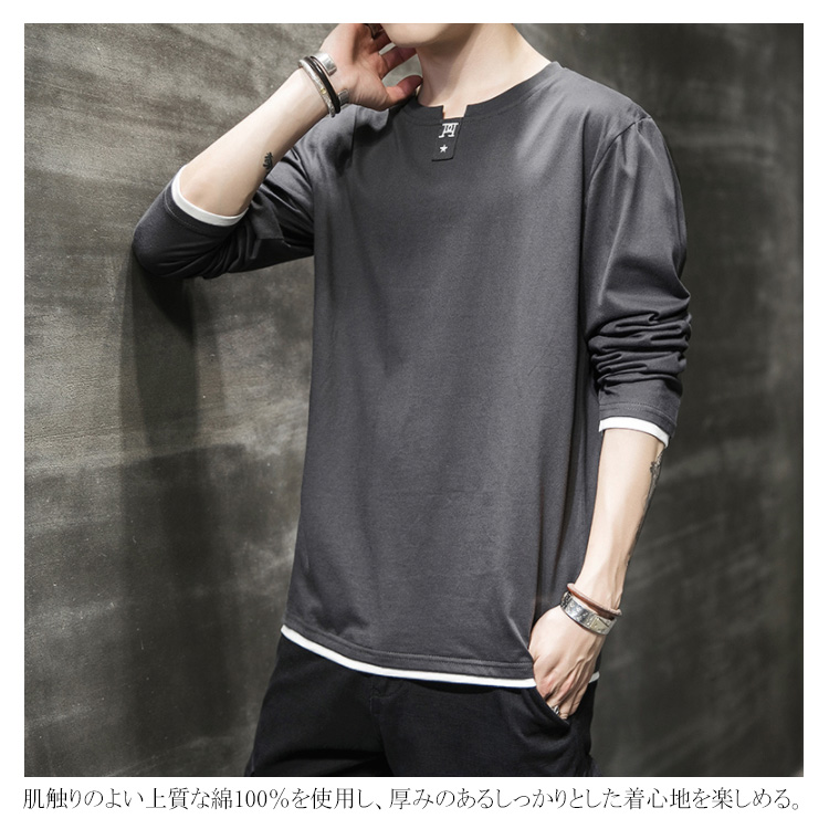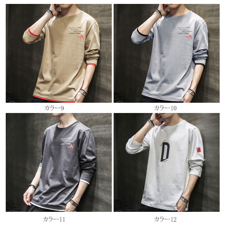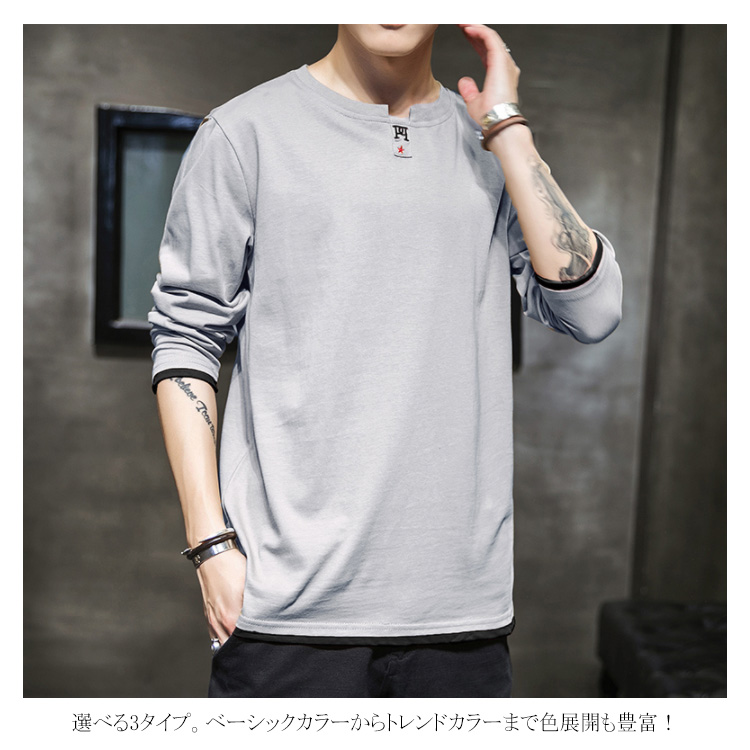 送料無料 選べる3タイプ! 長袖Tシャツ ロングTシャツ メンズ トップス 長袖 カットソー スウェット カジュアル トレーナー ロンT 重ね着風 プリント コットン Tシャツ 春秋 インナー ゆるカジ アメカジ お兄系 ストリート系 モード 通勤 通学 お出かけ