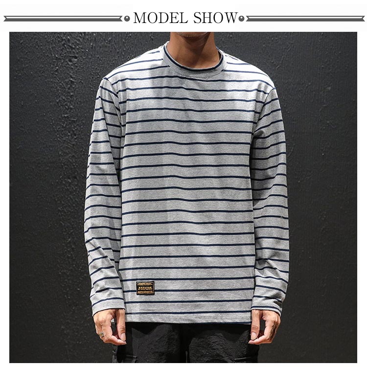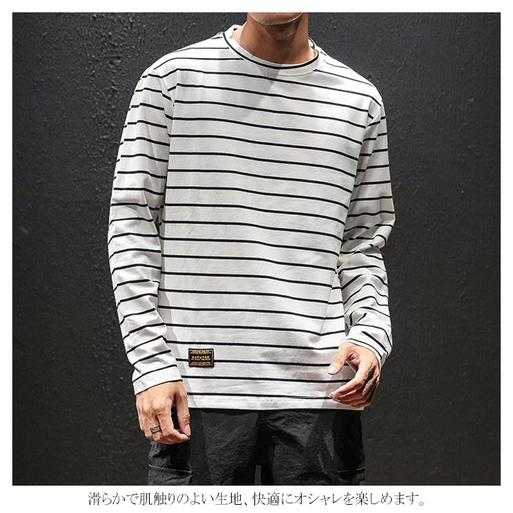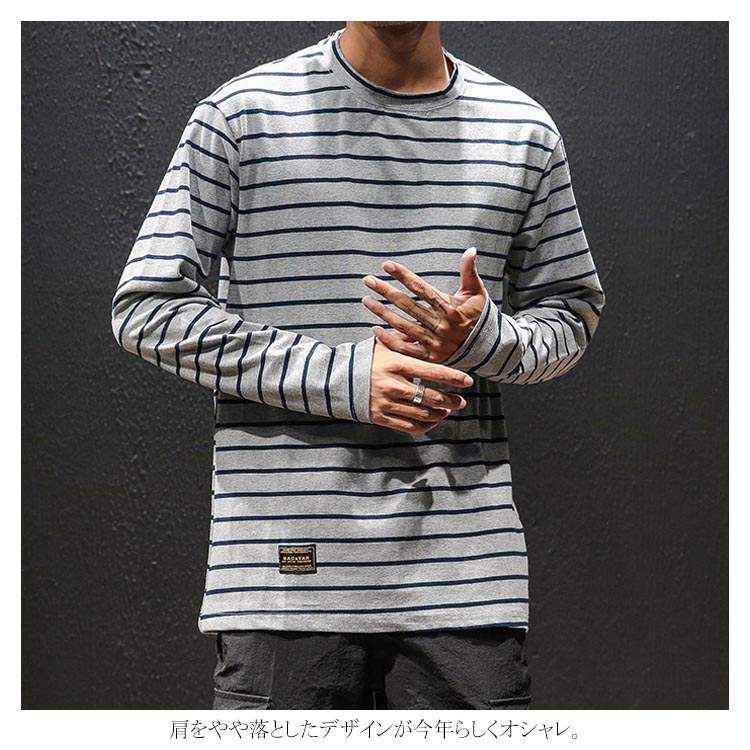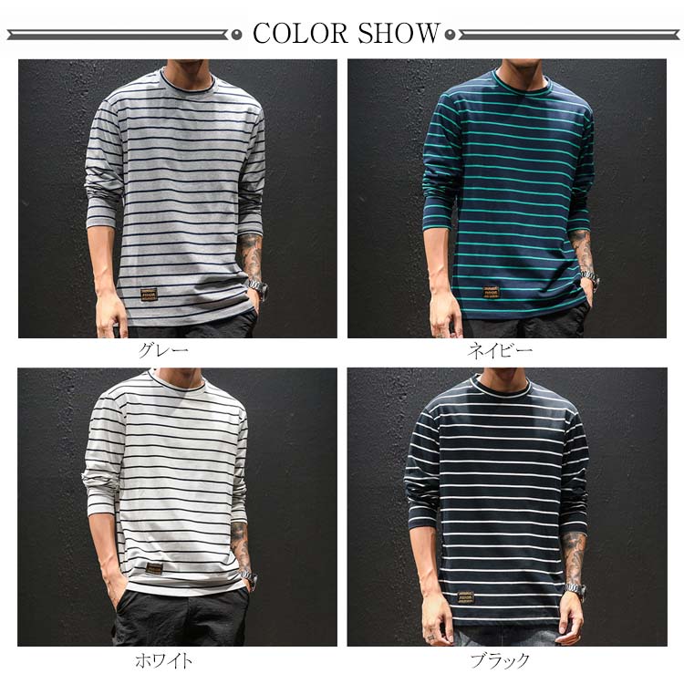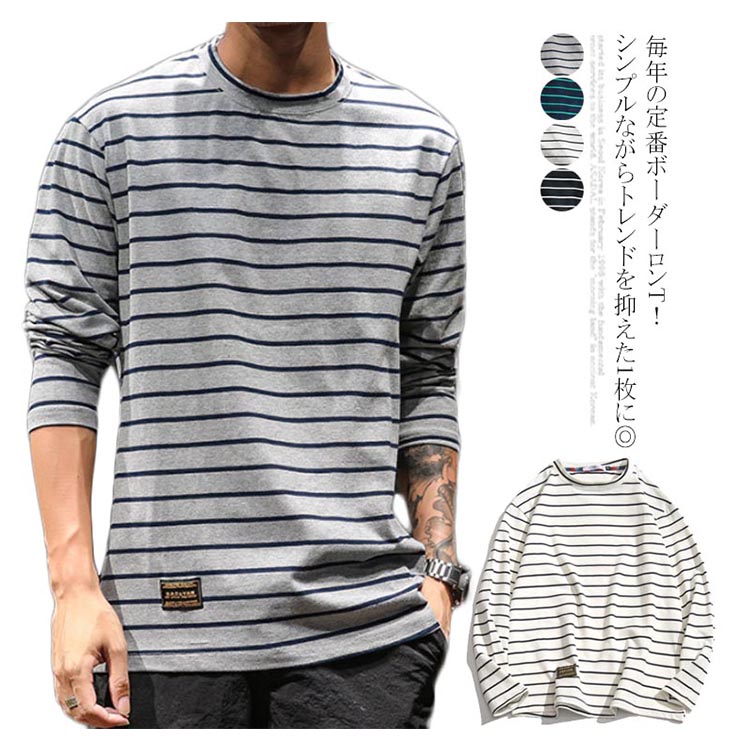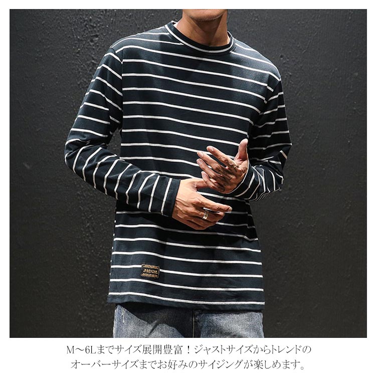 送料無料 ボーダー Tシャツ ロングTシャツ 長袖 メンズ トップス マリン コットン カットソー ラウンドネック ボーダーロンT ロンT 長袖Tシャツ 大きいサイズ 春 秋 秋服 ボーダーT オシャレ ファッション