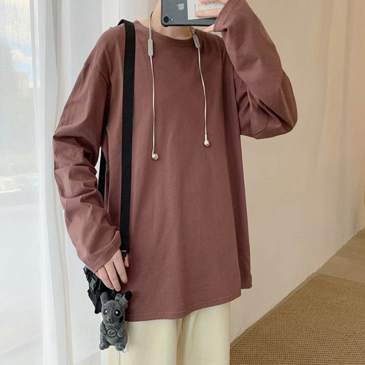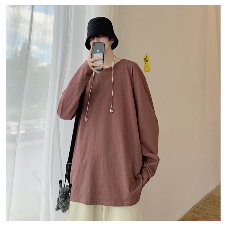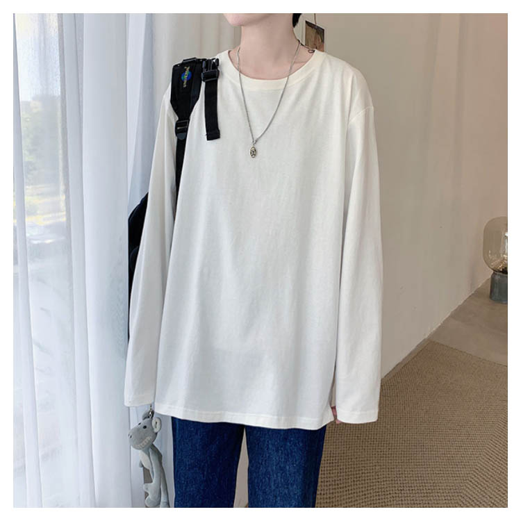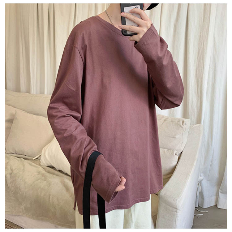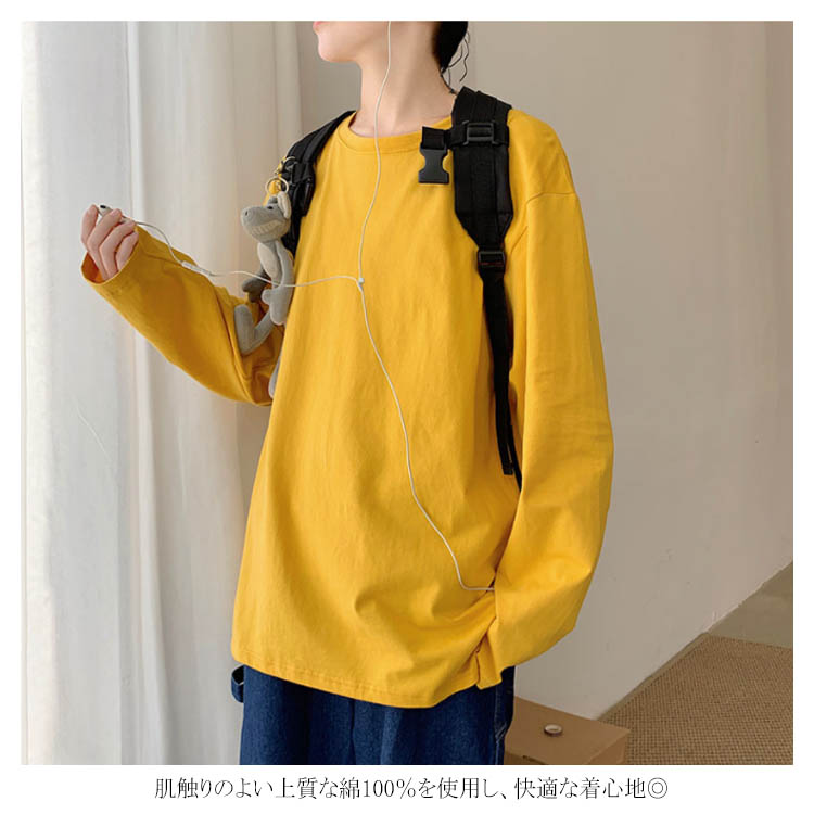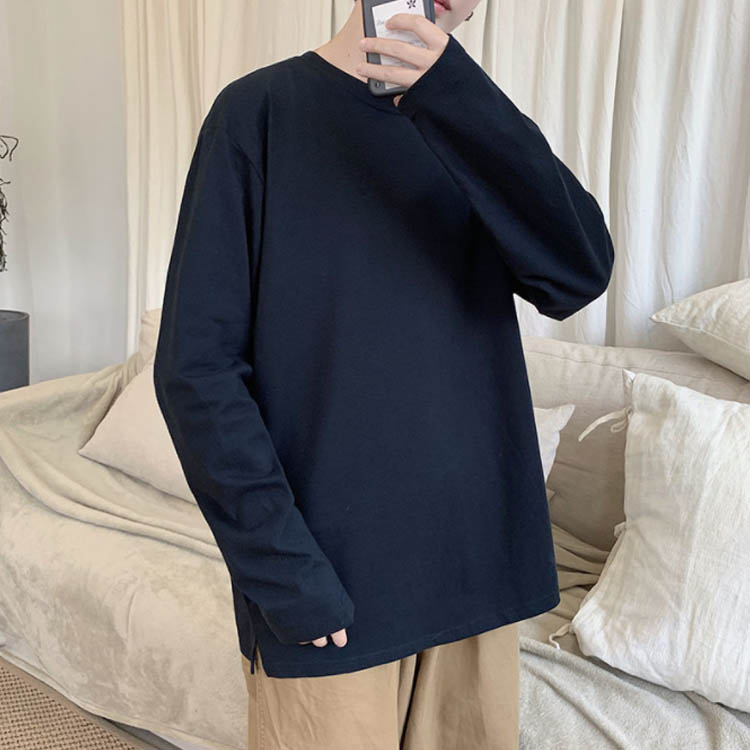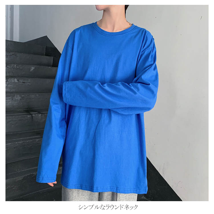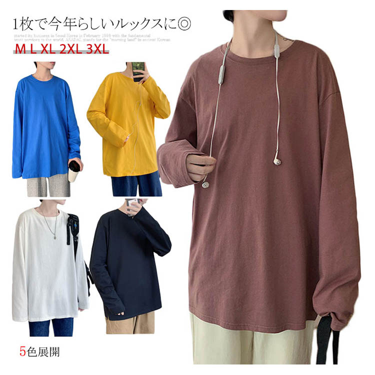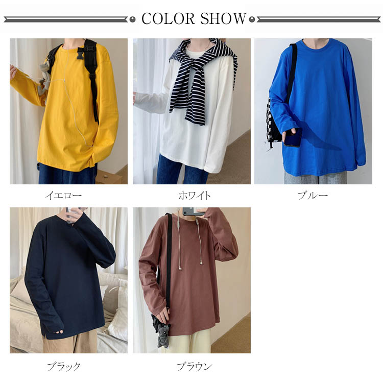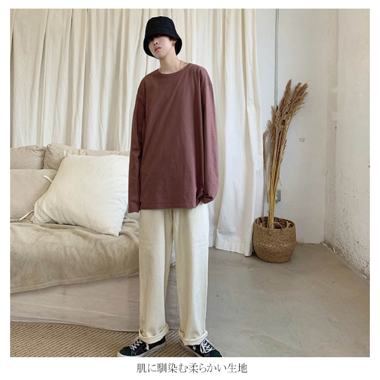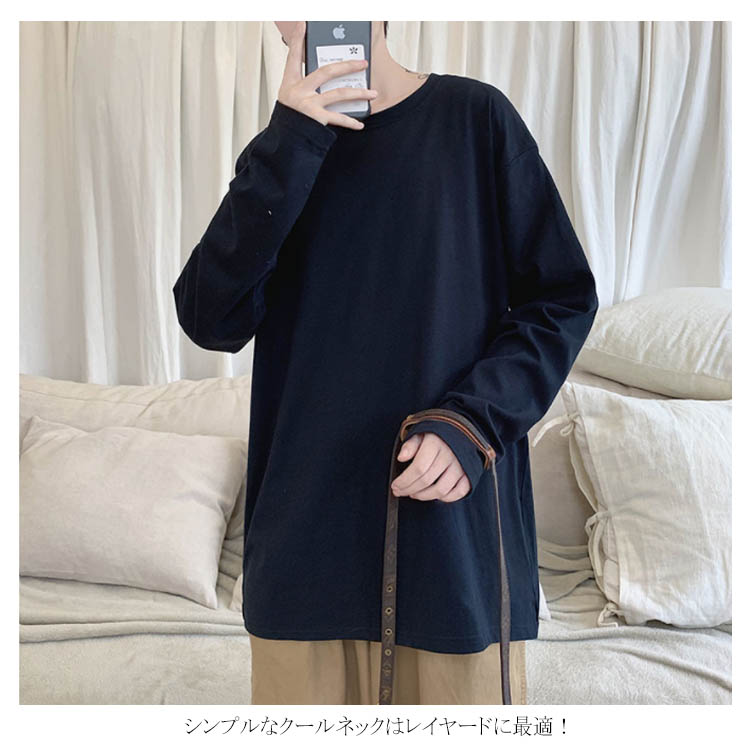 送料無料 長袖Tシャツ 無地 ゆったり メンズ ロンT コットン 春 秋 トップス 長袖 カットソー オーバーサイズ Tシャツ スリット入り 学生 プルオーバー クルーネック インナー スウェット ビッグ ドロップショルダー ストリート系