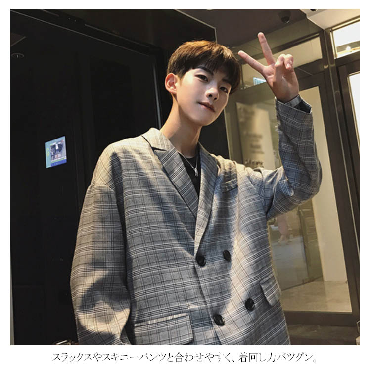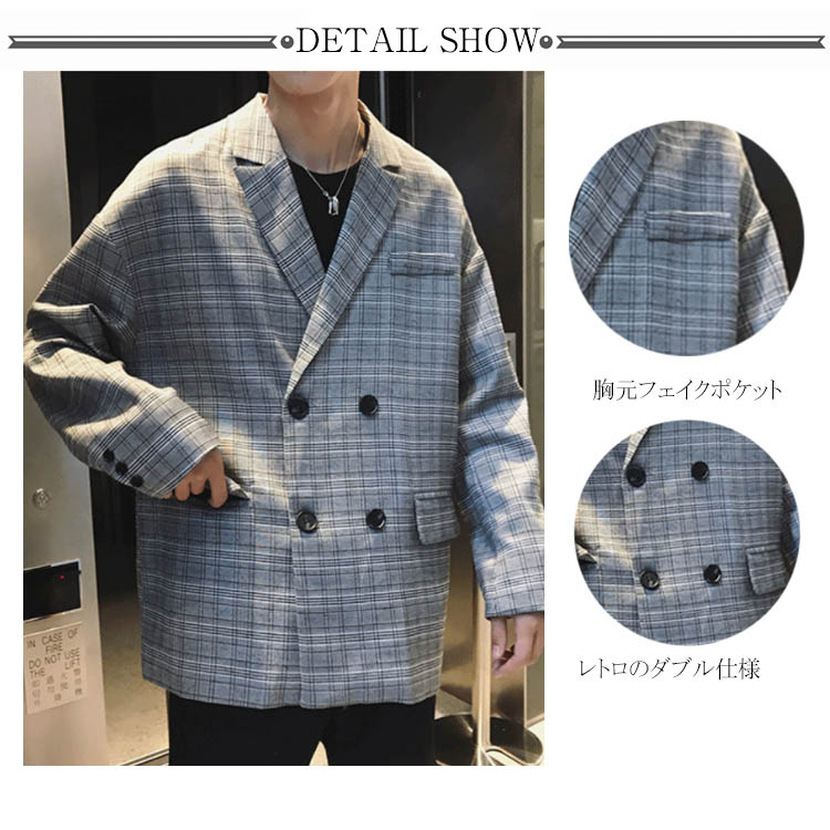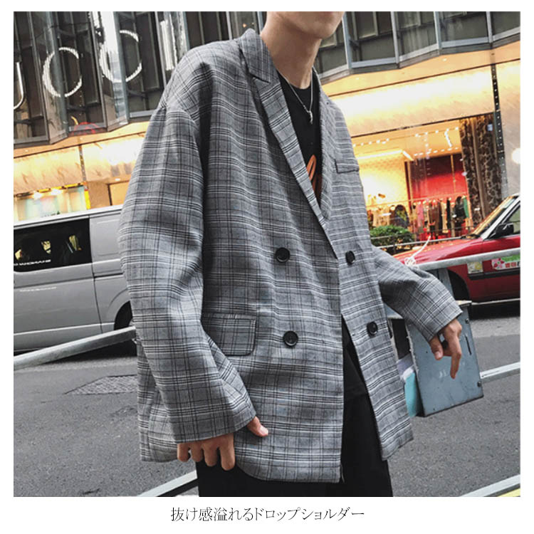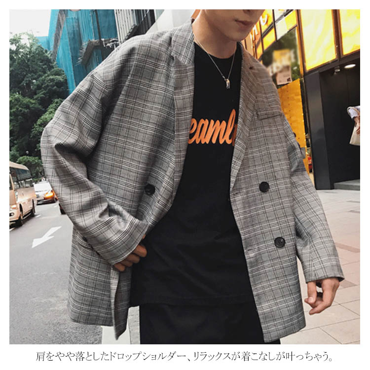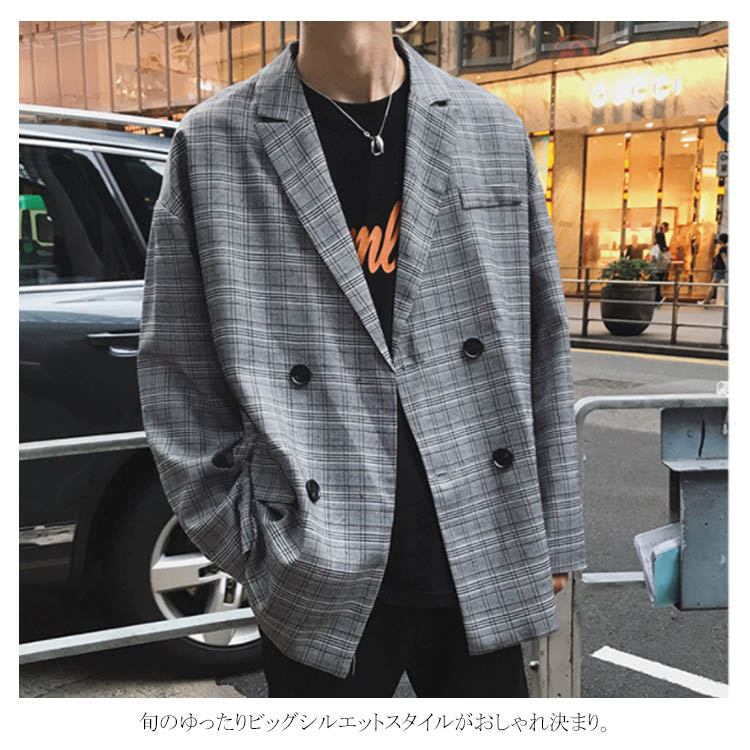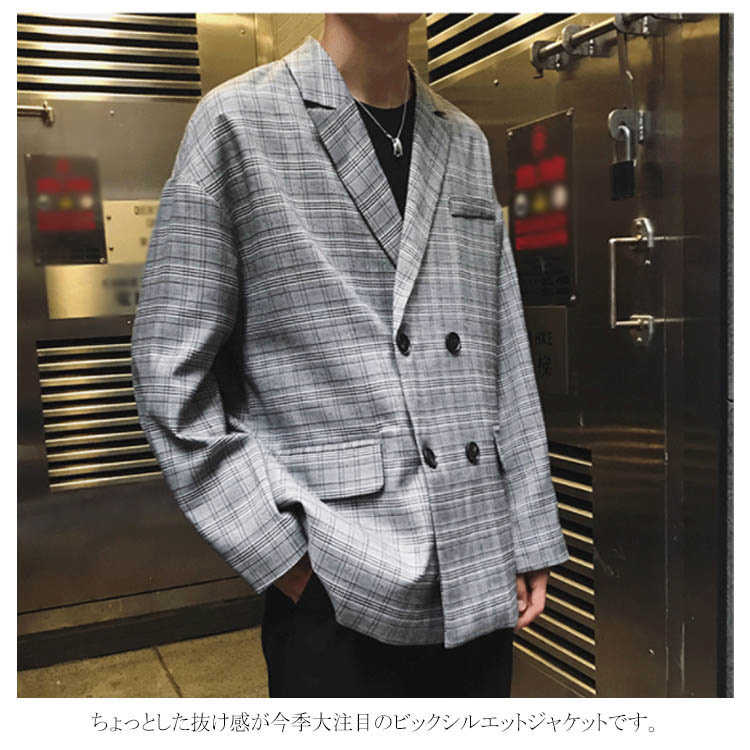 ジャケット テーラードジャケット オーバーサイズ メンズ おしゃれ カジュアル チェックテーラード ダブル ゆったり ビックシルエット アウター チェック ストリート系 アメカジ