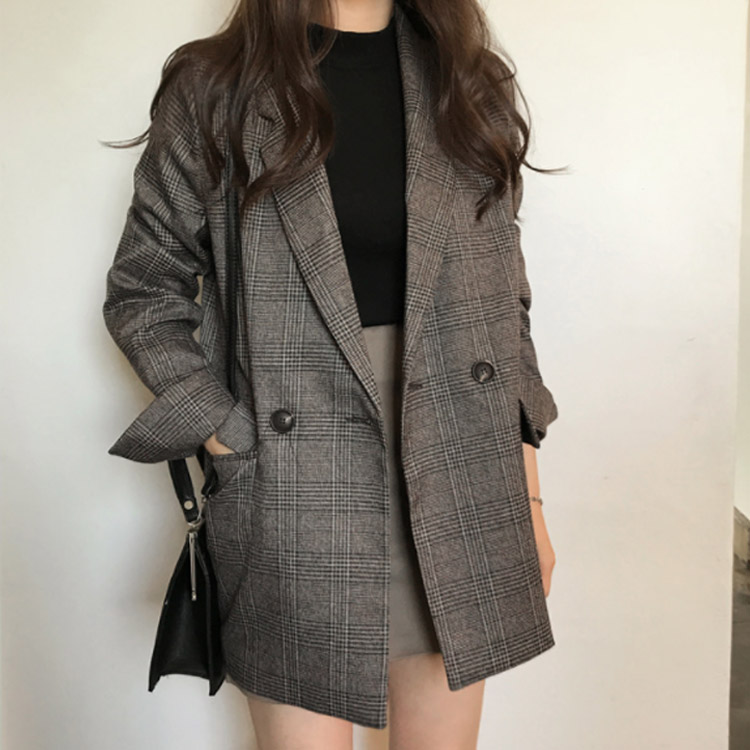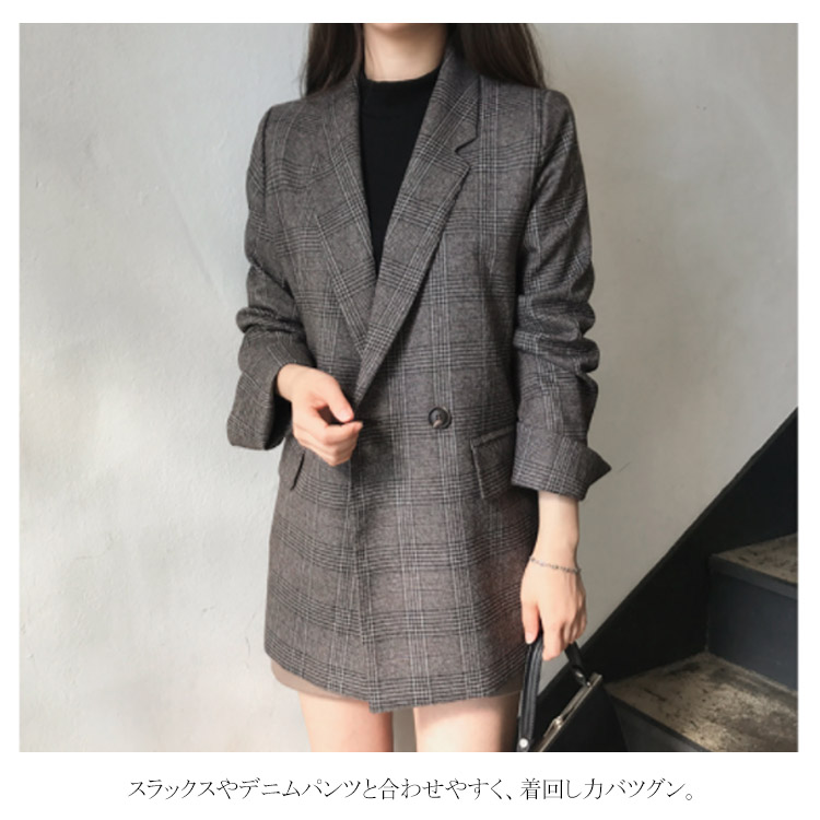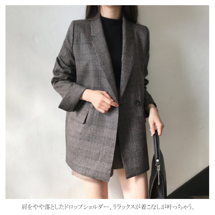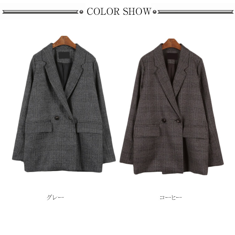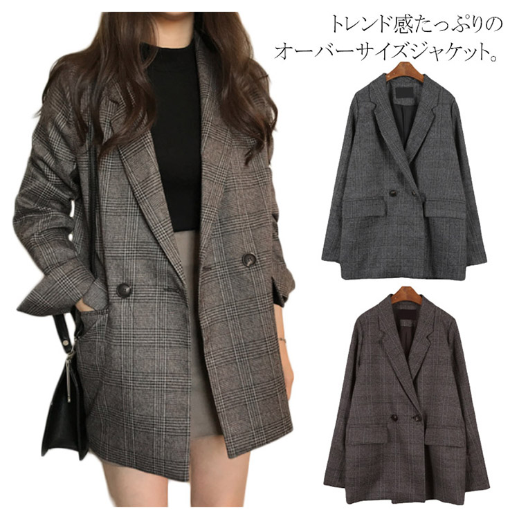 BF風 ジャケット テーラードジャケット レディース 大きいサイズ ゆったり ジャケット オーバーサイズ おしゃれ カジュアル チェックテーラード ダブル ゆったり ビックシルエット アウター チェック