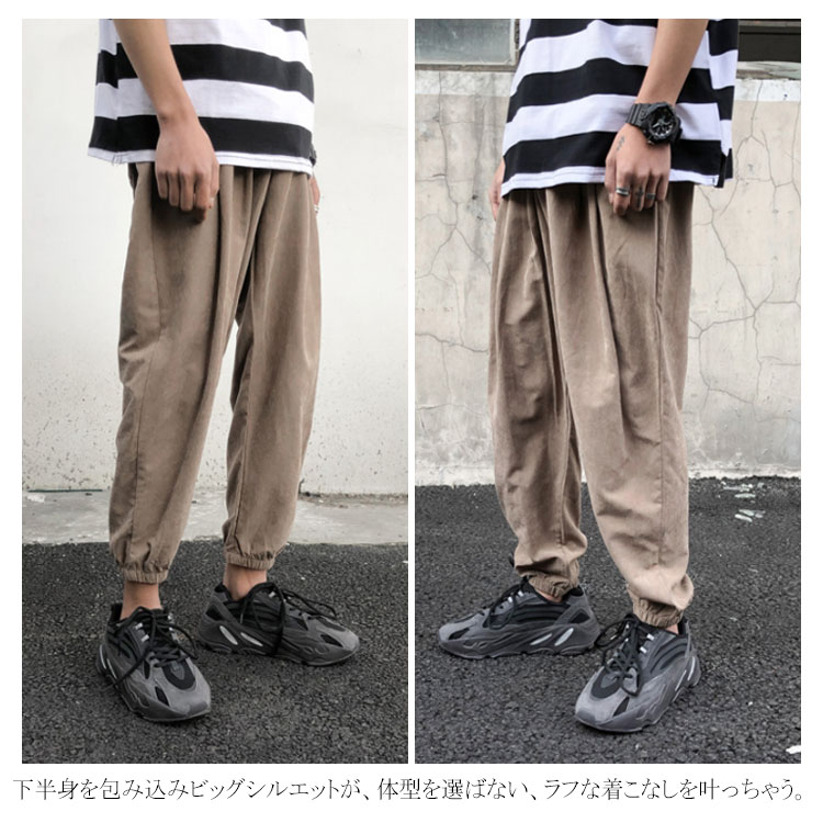 ジョガーパンツ ワイドパンツ ルーズ メンズ スエード パンツ ロングパンツ ハロン ワイド ズボン おしゃれ ストレート ゆるカジ モード ストリート系 カジュアル 秋冬