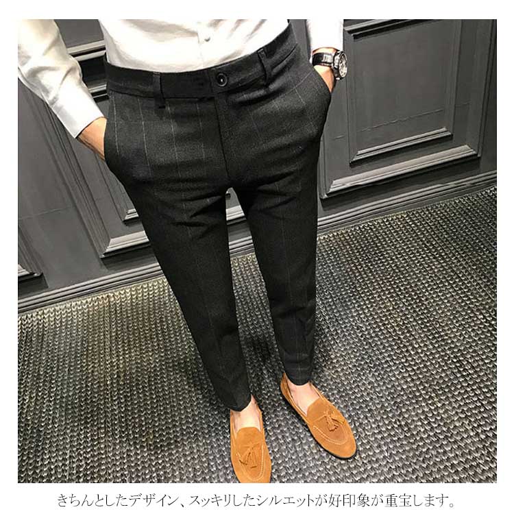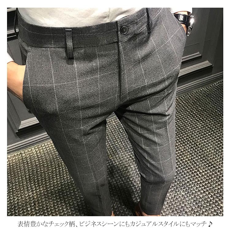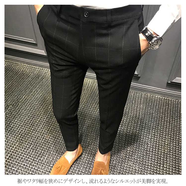 スラックス 細身 チノパンツ メンズ チェック柄 テーパードパンツ チェック ボトムス 長ズボン スリム ロングパンツ 春秋 夏 ビジネス パンツ カジュアル