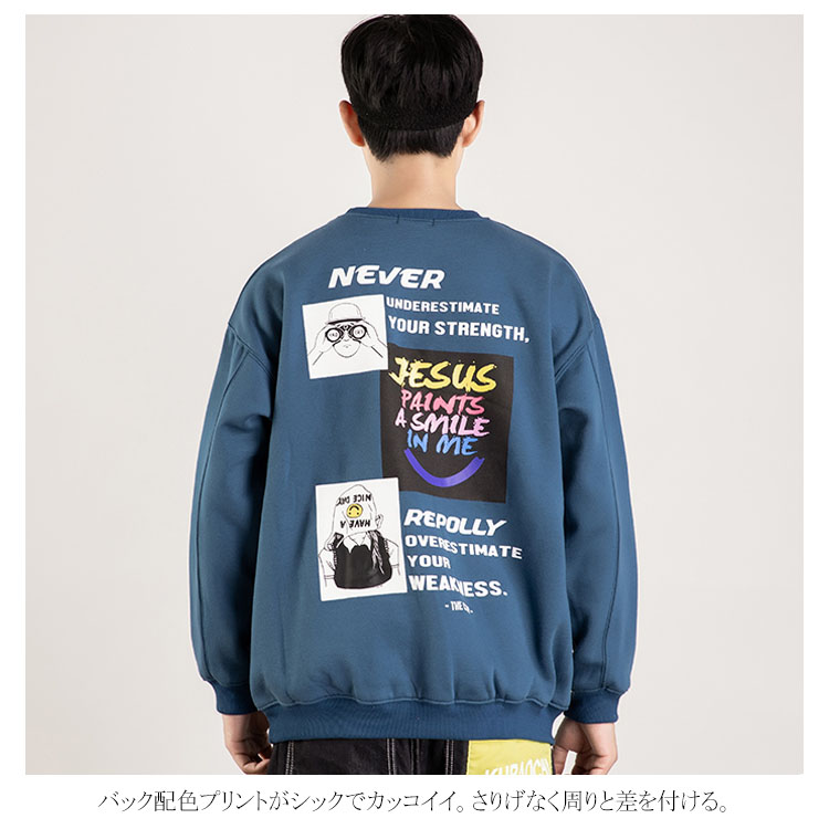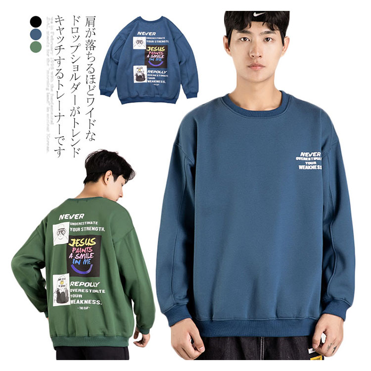 トレーナー メンズ オーバーサイズ おしゃれ プリント プルオーバー スウェット トップス スエット 厚手 秋冬 長袖 春 カジュアル 大きいサイズ ゆったり ビッグサイズ ダンスウェア ヒップポップ 大きめ パーカー ストリート