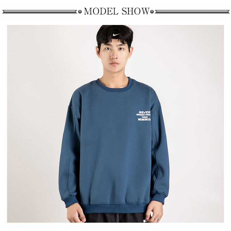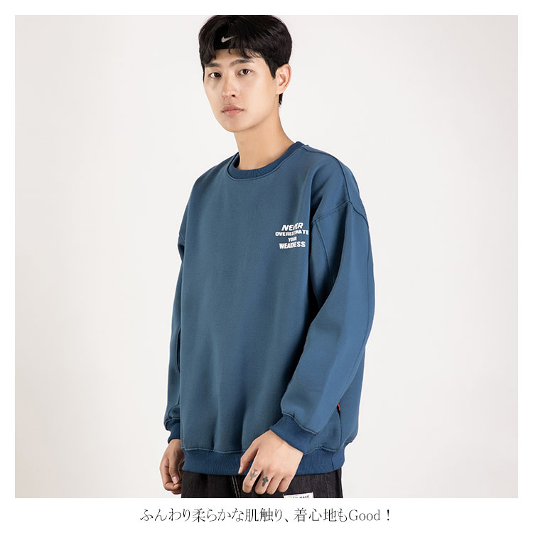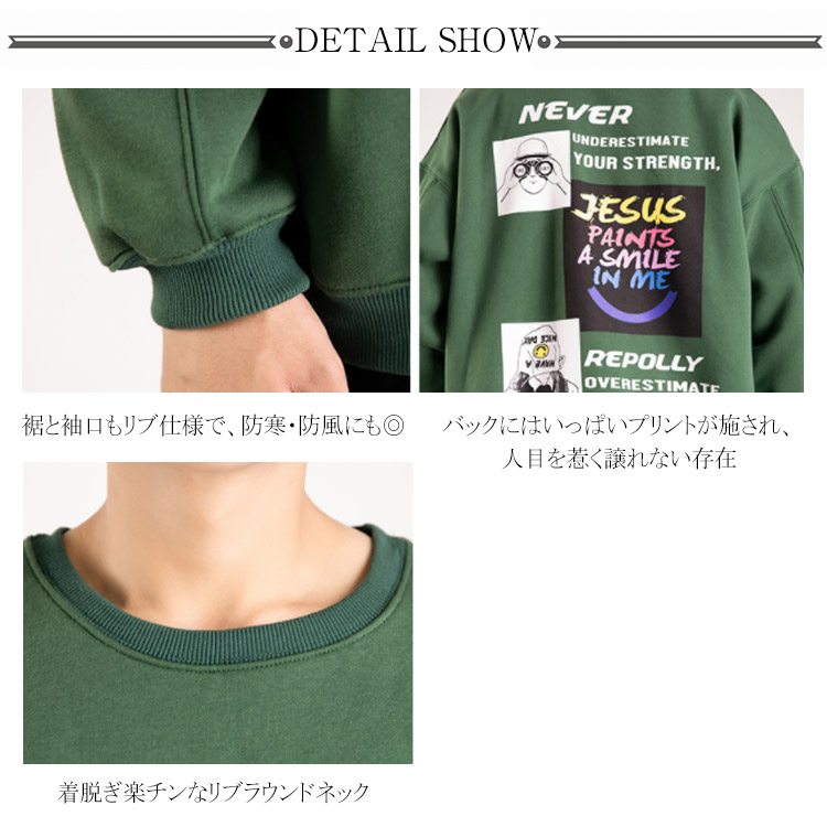| 肩が落ちるほどワイドなドロップショルダーがトレンドキャッチするトレーナーです。 今期大人気のオーバーサイズデザインで、いつものコーデに合わせるだけでおしゃれ決まり。 ふんわり柔らかな肌触り、着心地もGood! バック配色プリントがシックでカッコイイ。さりげなく周りと差を付ける。 これからの季節大活躍するから重宝します。 | |