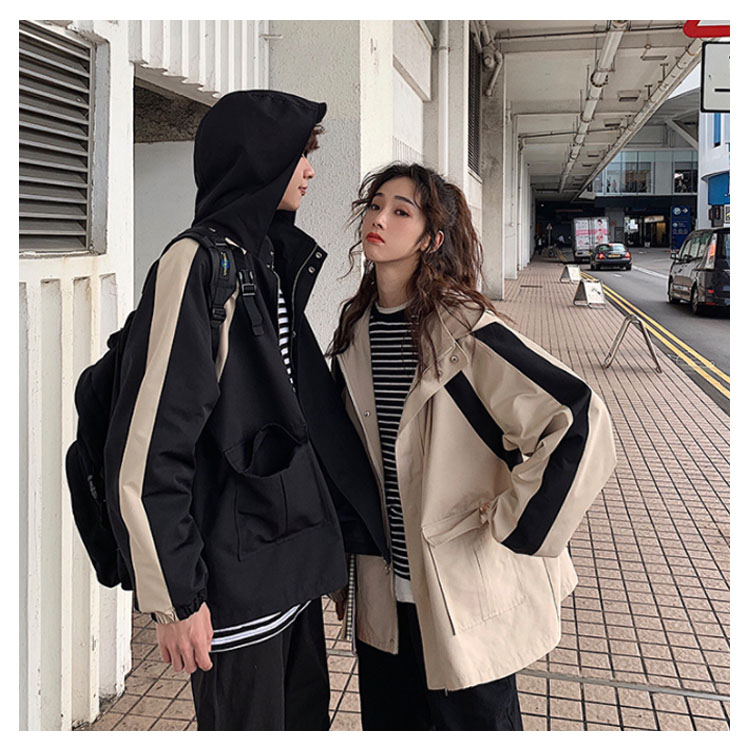 ジャケット ペアルック メンズ レディース スポーティー ゆったり トラックジャケット ブルゾン ジャンパー ライン入り 配色 ラグランスリーブ ドロップショルダー レトロ 大きいサイズ アウター ジャージ スポーツ ビター系 ドルマン ウインドブレーカー 秋