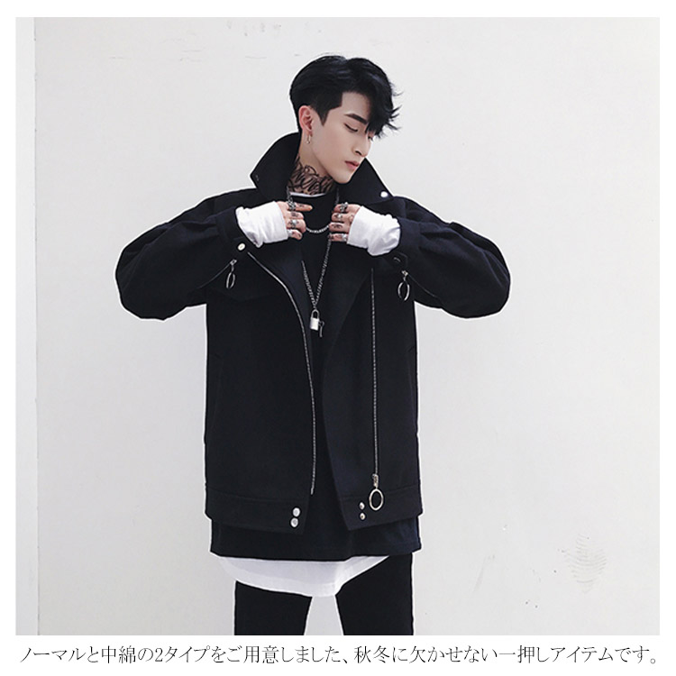 ライダースコート ショートコート メンズ 厚手 ジャケット アウター ショート丈 腰丈 コート カジュアルコート 防寒着 中綿 ファスナー付き ライダースジャケット ピーコート 秋服 秋冬 モード おしゃれ 新作 ストリート系 モード