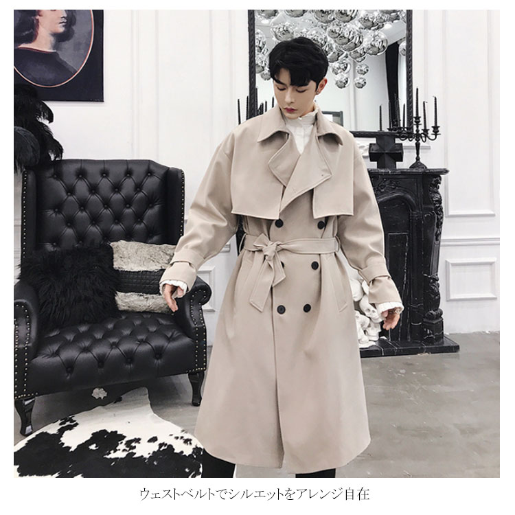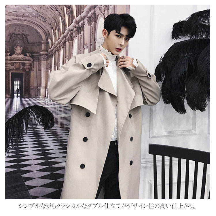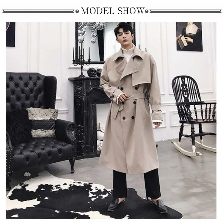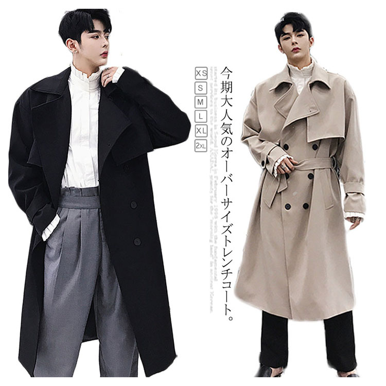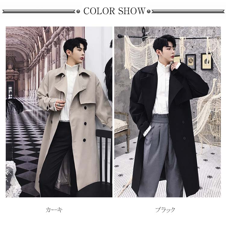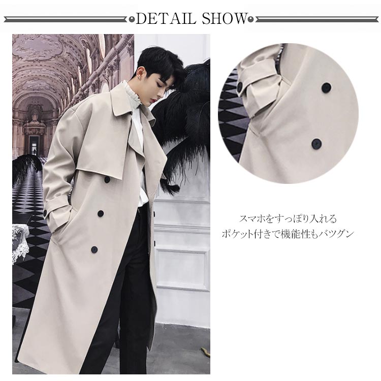 トレンチコート ロング丈 膝下 メンズ ビジネス カジュアル オーバーサイズ ゆったり 無地 通勤 ビックシルエット アウター ジャケット モード ストリート系 春 秋冬 大きいサイズ 小さいサイズ