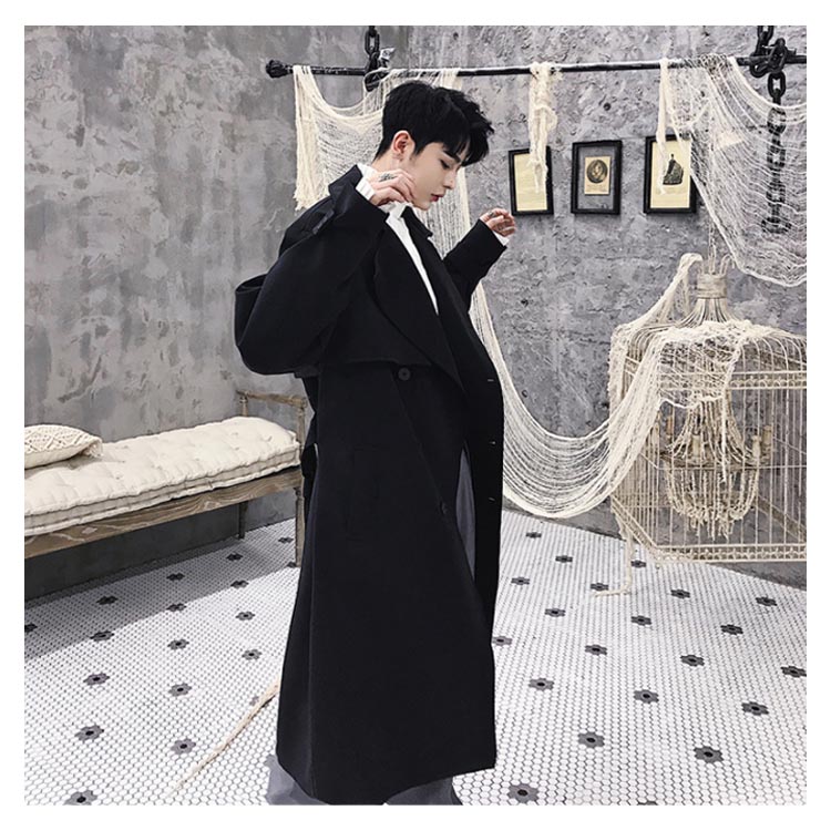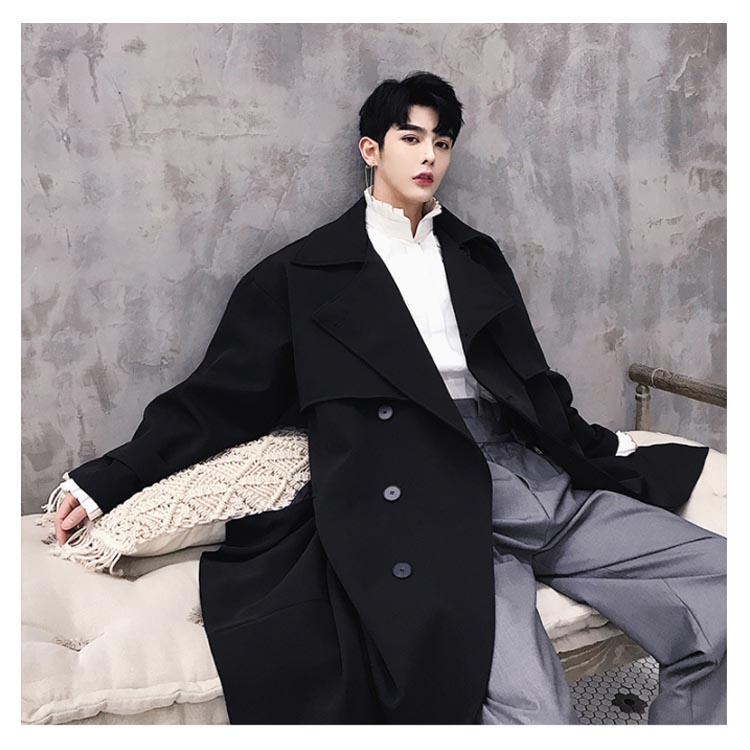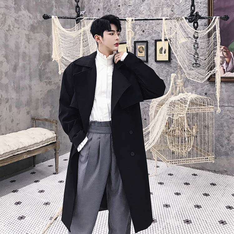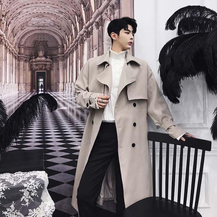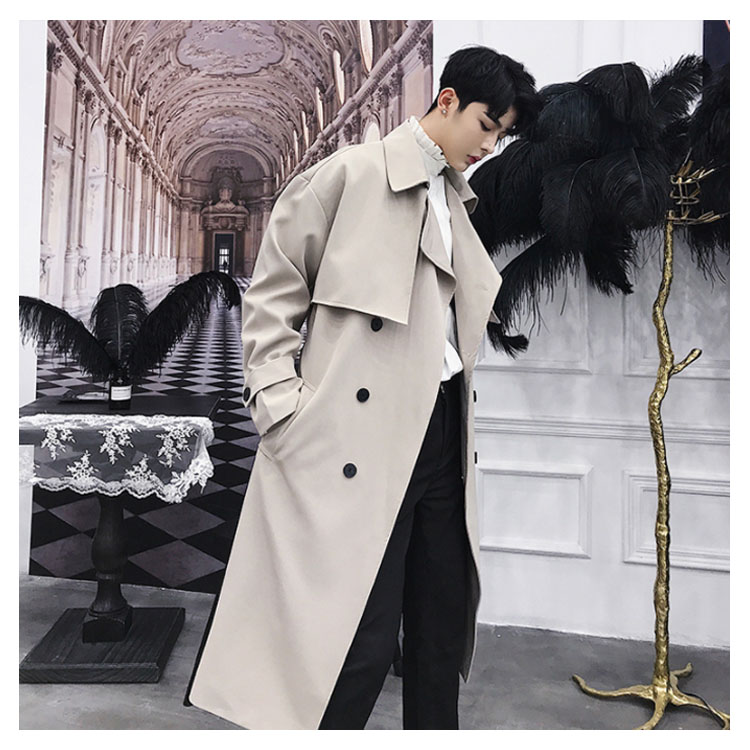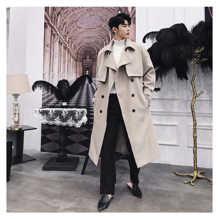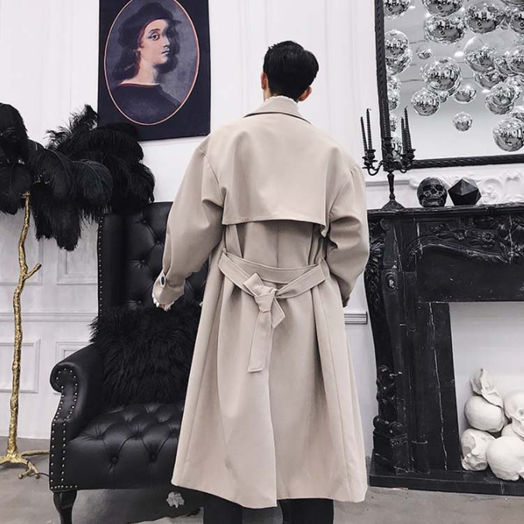 トレンチコート ロング丈 膝下 メンズ ビジネス カジュアル オーバーサイズ ゆったり 無地 通勤 ビックシルエット アウター ジャケット モード ストリート系 春 秋冬 大きいサイズ 小さいサイズ