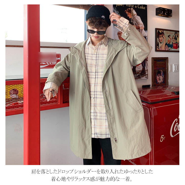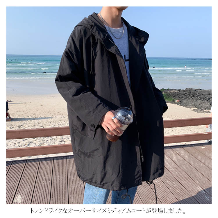 ジャケット コート ミディアム丈 メンズ 無地 アウター 羽織り 大きいサイズ オーバーサイズ トレンド ゆったり 体型カバー ジップアップ スプリングコート カーデ トラックジャケット カジュアル 通学 通勤 お出かけ