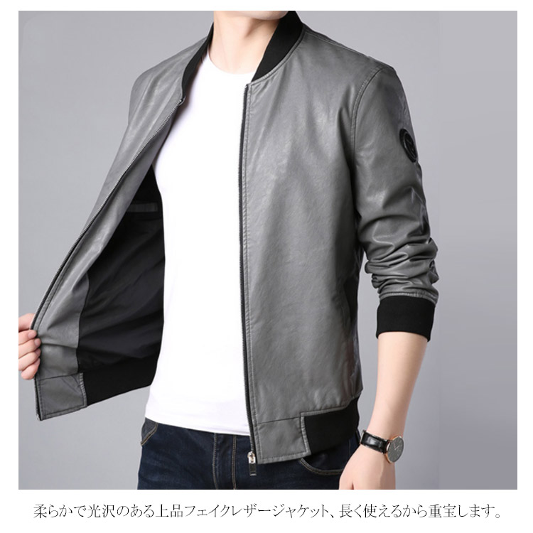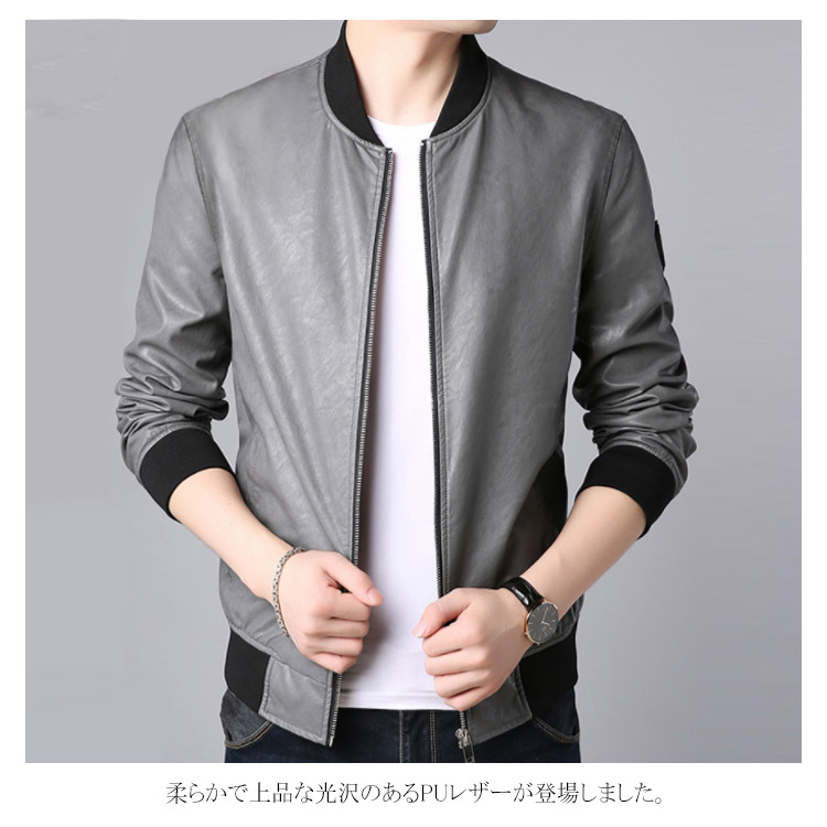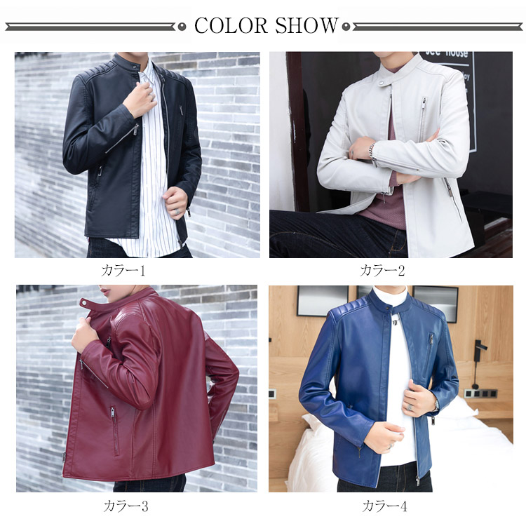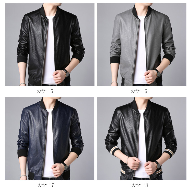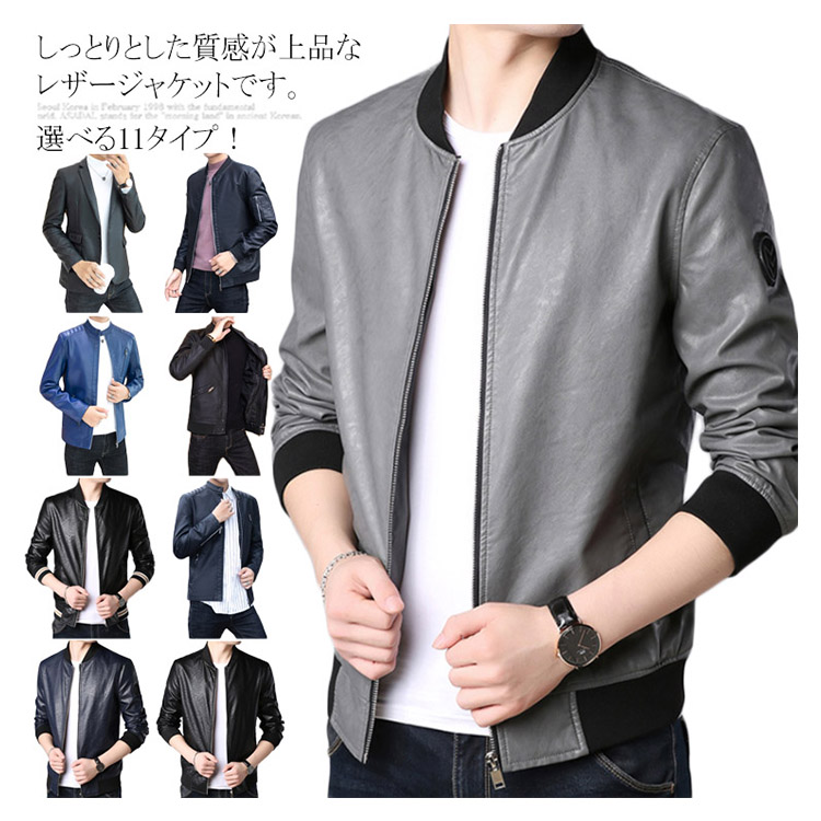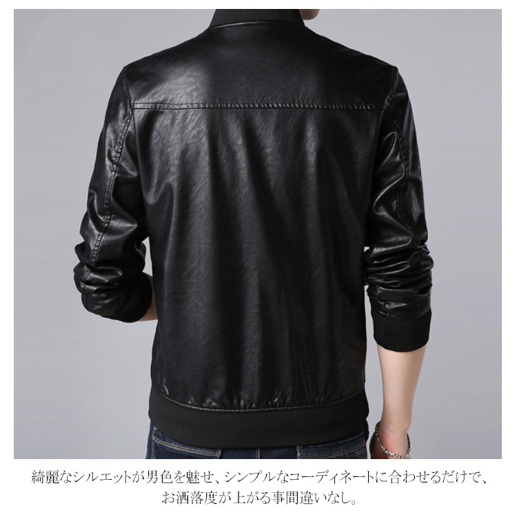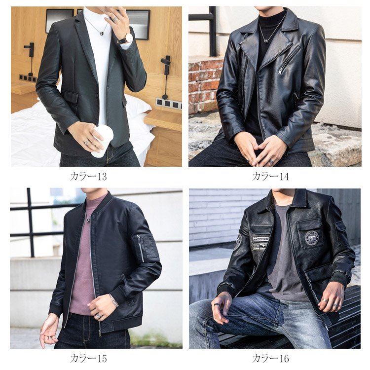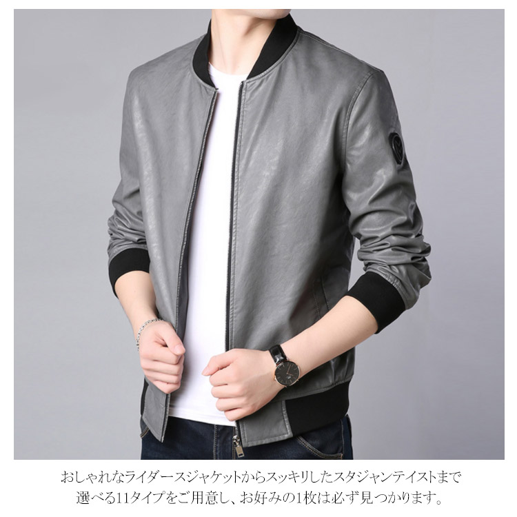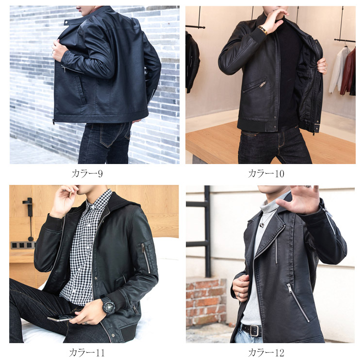 | しっとりとした質感が上品なレザージャケットです。 柔らかで上品な光沢のあるPUレザーが登場しました。 おしゃれなライダースジャケットからスッキリしたスタジャンテイストまで選べる11タイプをご用意し、お好みの1枚は必ず見つかります。 綺麗なシルエットが男色を魅せ、シンプルなコーディネートに合わせるだけで、お洒落度が上がる事間違いなし。 柔らかで光沢のある上品フェイクレザージャケット、長く使えるから重宝します。 秋冬のワードロープに欠かせないレザージャケットです。 | |