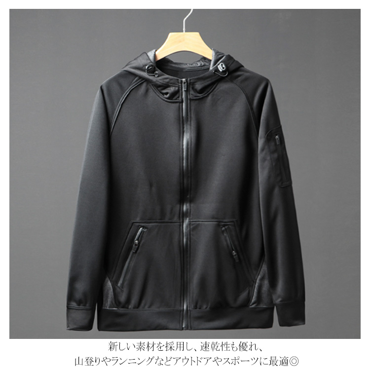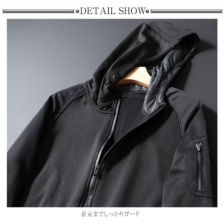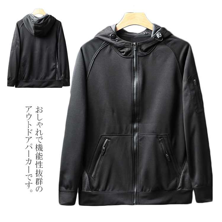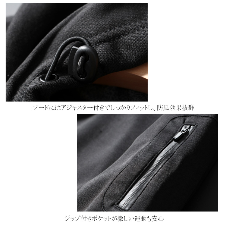 マウンテンパーカー メンズ ジップアップ パーカー 防寒 防風 裏起毛 ストレッチ パーカ 柔らかい フード付き 速乾 通気性 吸湿 アウトドア スポーツ ランニング 切替 カジュアル 普段着 山登り お釣り