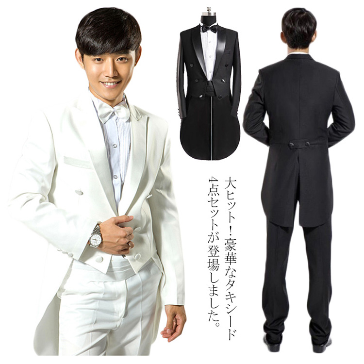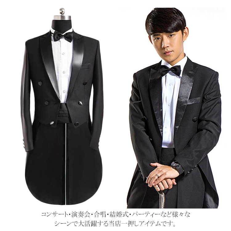 超お得 豪華な4点セット タキシード メンズ 燕尾服 上下セット フォーマル スーツ 演出服 結婚式 お花婿 礼服 コンサート 司会 ダンスウェア ジャズウェア 魔術師 公演服 団体服 ステージ衣装 合唱 ピアノ 発表会 演劇