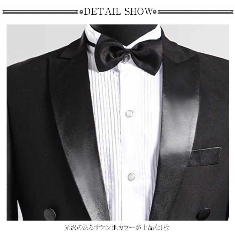 | 大ヒット!豪華なタキシード4点セットが登場しました。 ジャケット、ズボン、蝶タイ、マーベルトの4点セットとなっています。 ディテールにこだわり、計算された綺麗なシルエットが男色を演出してくれます。 コンサート・演奏会・合唱・結婚式・パーティーなど様々なシーンで大活躍する当店一押しアイテムです。 | |