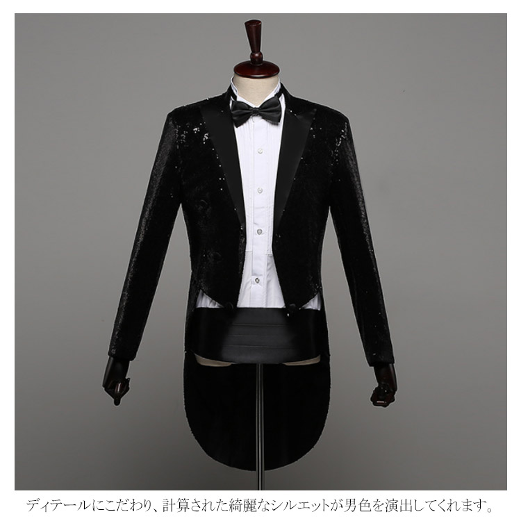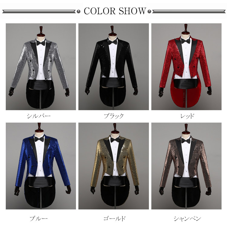 キラキラタキシード メンズ 燕尾服 スーツ ジャケット スパンコール タキシード スーツ 演出服 結婚式 礼服 コンサート 宴会 パーティー 芸人 お笑い 衣装 出し物 手品 マジック 司会 ジャズウェア 魔術師 公演服 団体服 ステージ衣装 合唱 ピアノ 発表会 演劇
