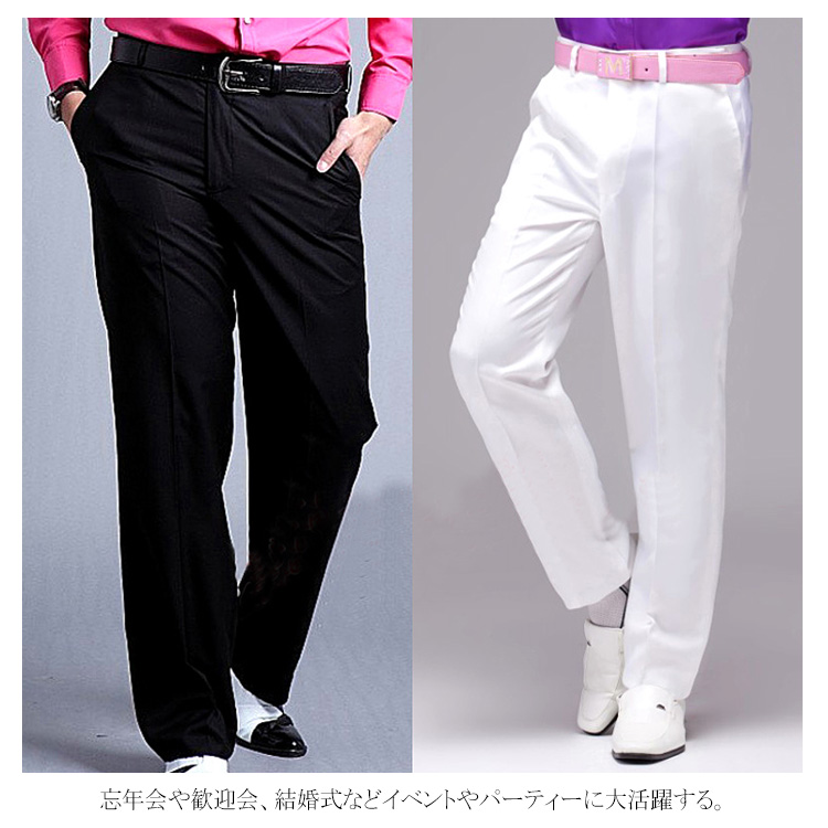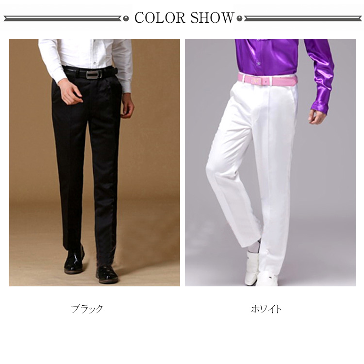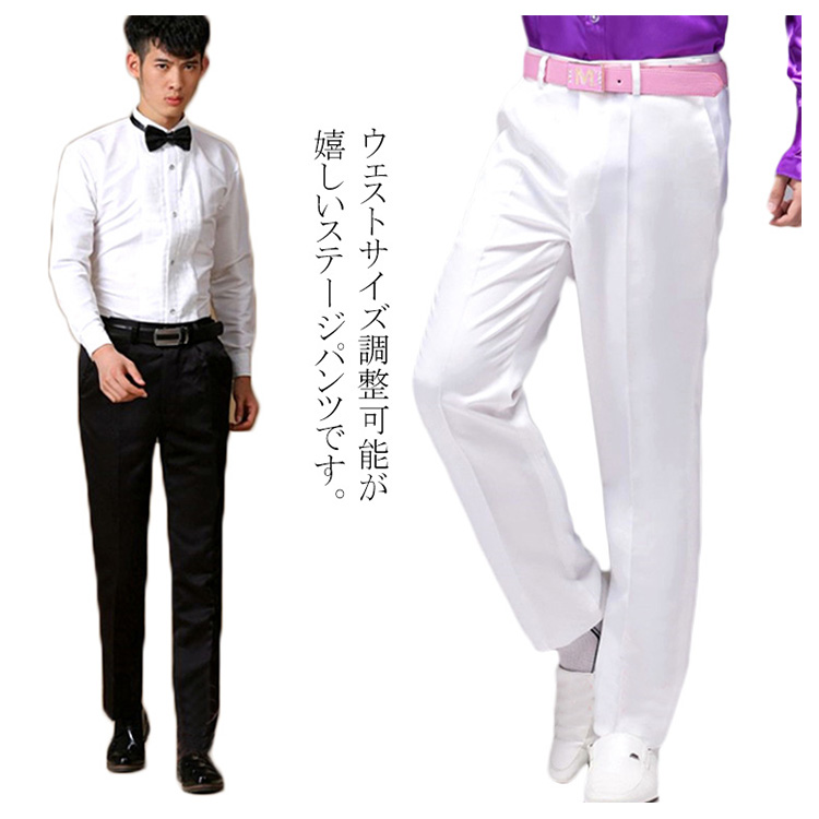 送料無料 ウェストサイズ調整可能! 演出服 パンツ 長ズボン メンズ スラックス ロングパンツ ワイドパンツ ストレート パンツ 黒 白 ボトムス 結婚式 礼服 コンサート 宴会 パーティー 芸人 お笑い 衣装 出し物 手品 マジック 司会 ジャズウェア 魔術師 公演服 団体服 ステージ衣装 合唱 ピアノ 発表会 演劇