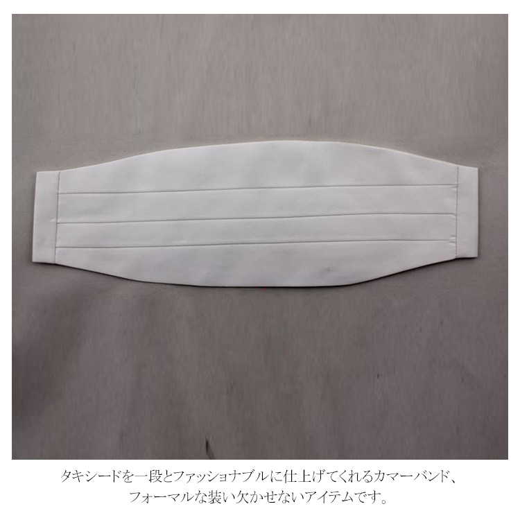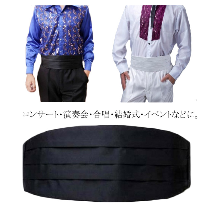 | コンサート・演奏会・合唱・結婚式・イベントなどに。 カマーバンドを身に着ければ紳士スタイルを一気に完成! ベーシックブラックとホワイトをご用意しました。 マジックテープでサイズ調節も可能、着脱ぎも楽チン! タキシードを一段とファッショナブルに仕上げてくれるカマーバンド、フォーマルな装い欠かせないアイテムです。 パーティーや結婚式、演出会、忘年会などにもお勧めです。 | |