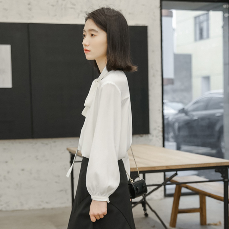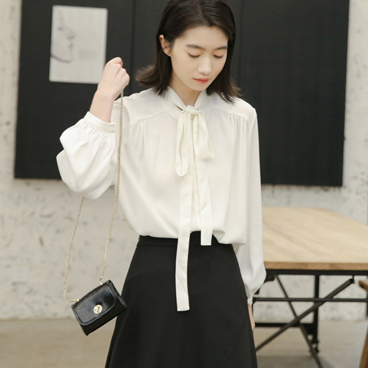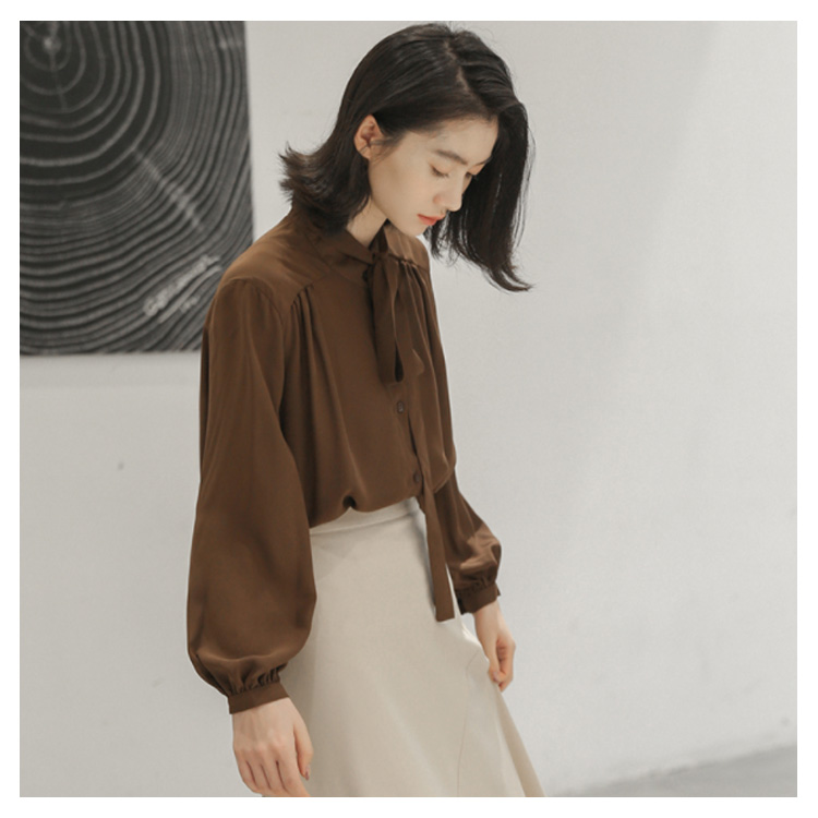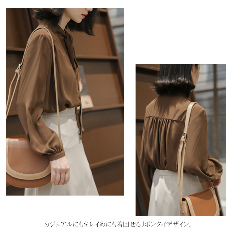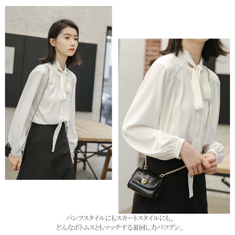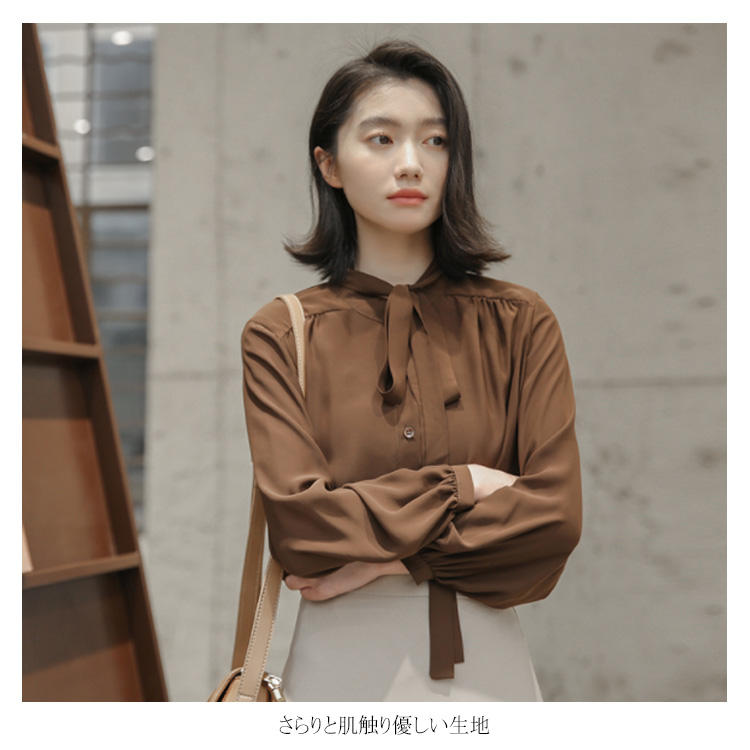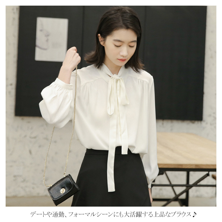 リボンタイ ブラウス 長袖シャツ レディース 無地 ゆったり パフスリーブ 切替 おしゃれ トップス カジュアル お仕事 キレイめ 長袖 シャツ とろみ ドレープ リボン オフィス 秋冬 春 上品 OL 通勤 事務服 20代 30代 40代