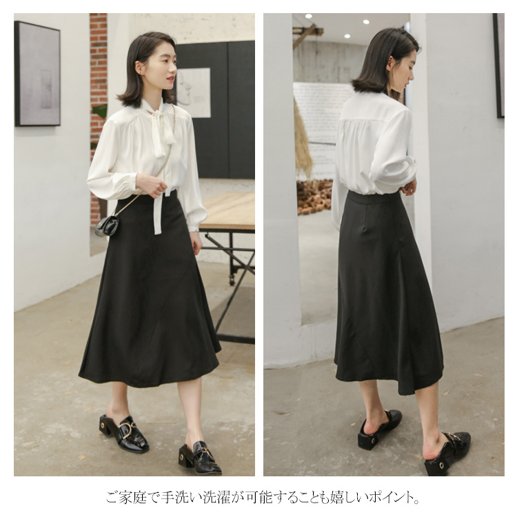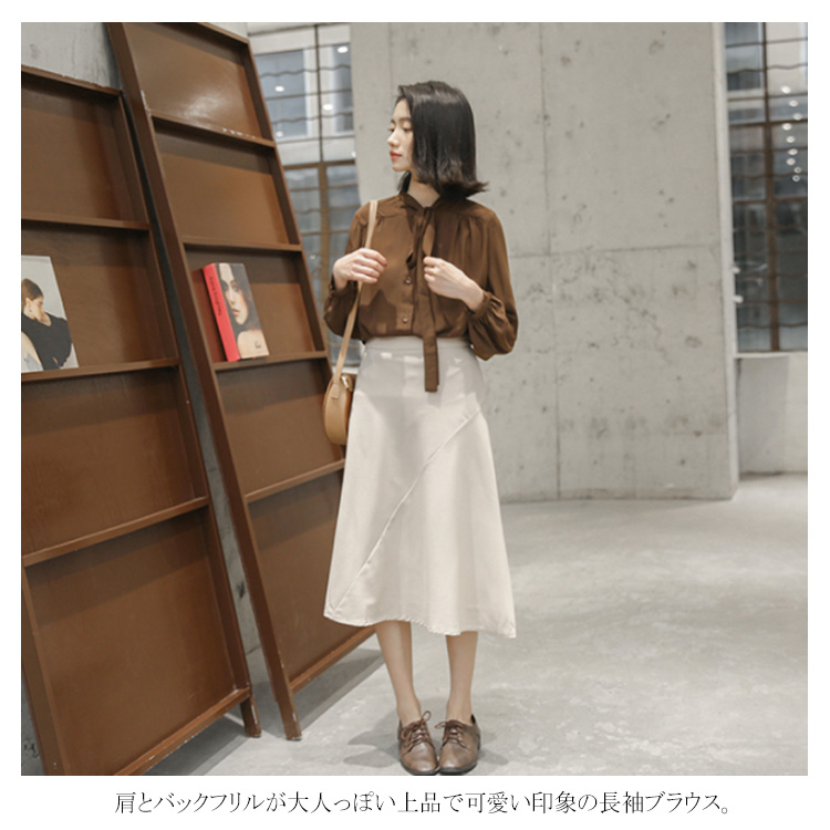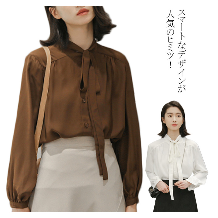 | スマートなデザインが人気のヒミツ! 肩とバックフリルが大人っぽい上品で可愛い印象の長袖ブラウス。 カジュアルにもキレイめにも着回せるリボンタイデザイン。 デートや通勤、フォーマルシーンにも大活躍する上品なブラウス♪ パンツスタイルにもスカートスタイルにも、どんなボトムスともマッチする着回し力バツグン。 ご家庭で手洗い洗濯が可能することも嬉しいポイント。 | |