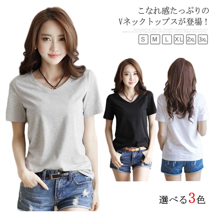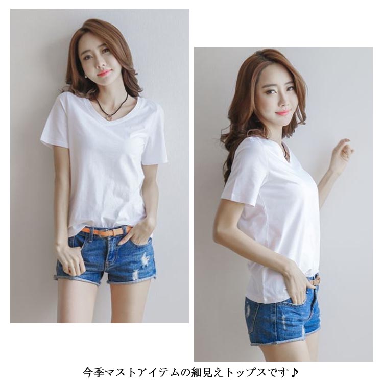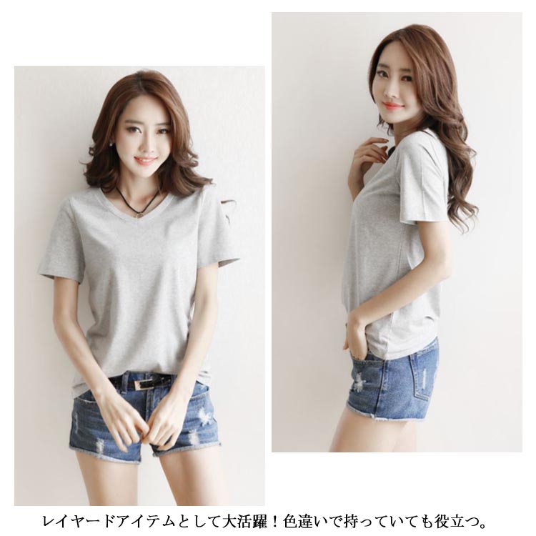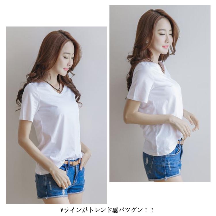 Vネック Tシャツ 半袖Tシャツ 半袖 Tシャツ 無地 Tシャツ シンプル Tシャツ レディース プルオーバー 春夏