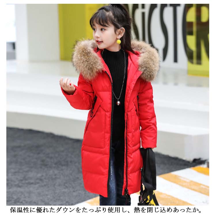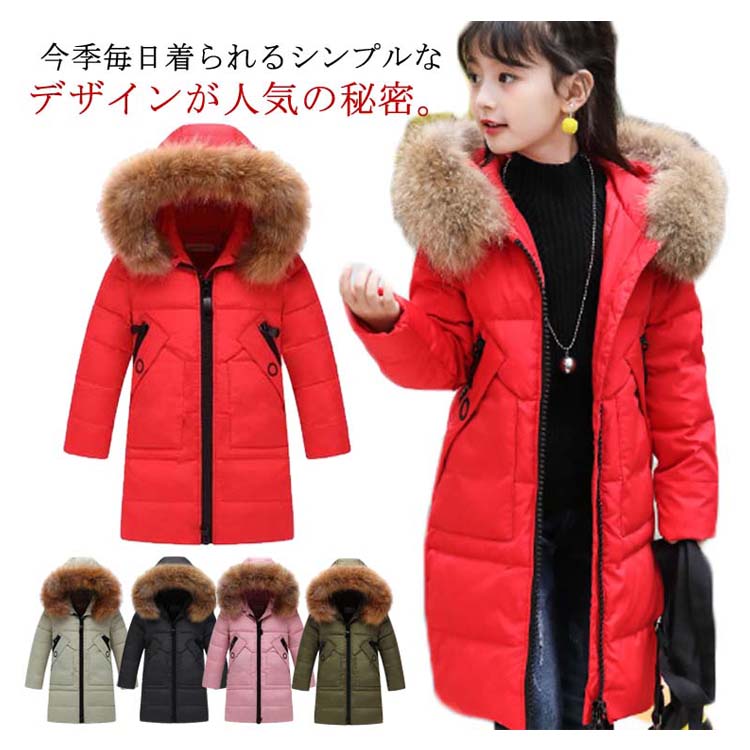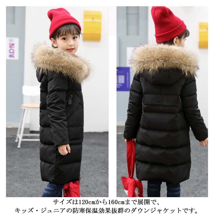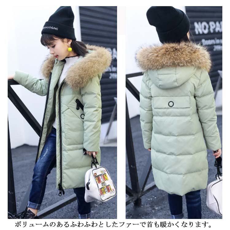 子供服 ダウンコート 女の子 キッズダウンコート キッズ ジュニア ダウンジャケット ロング アウター コート 防寒 ファー付き 冬 秋冬 通園 通学 120 130 140 150 160