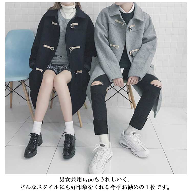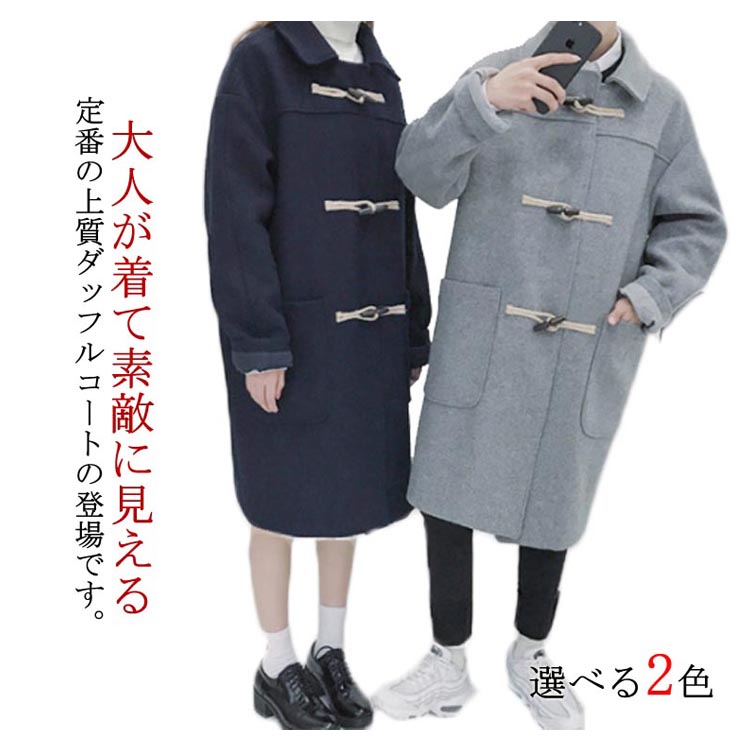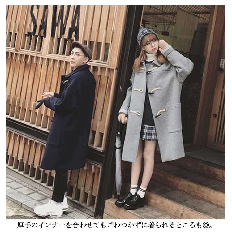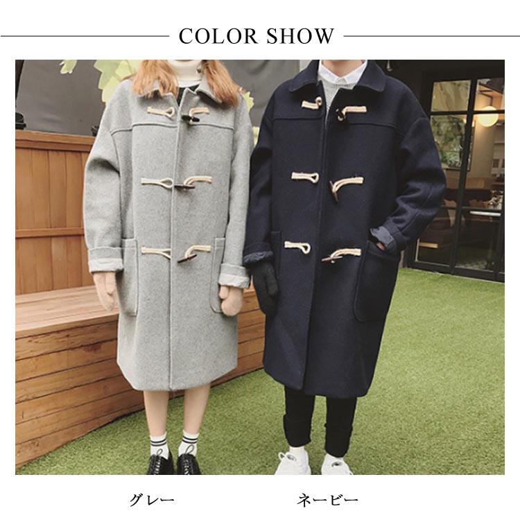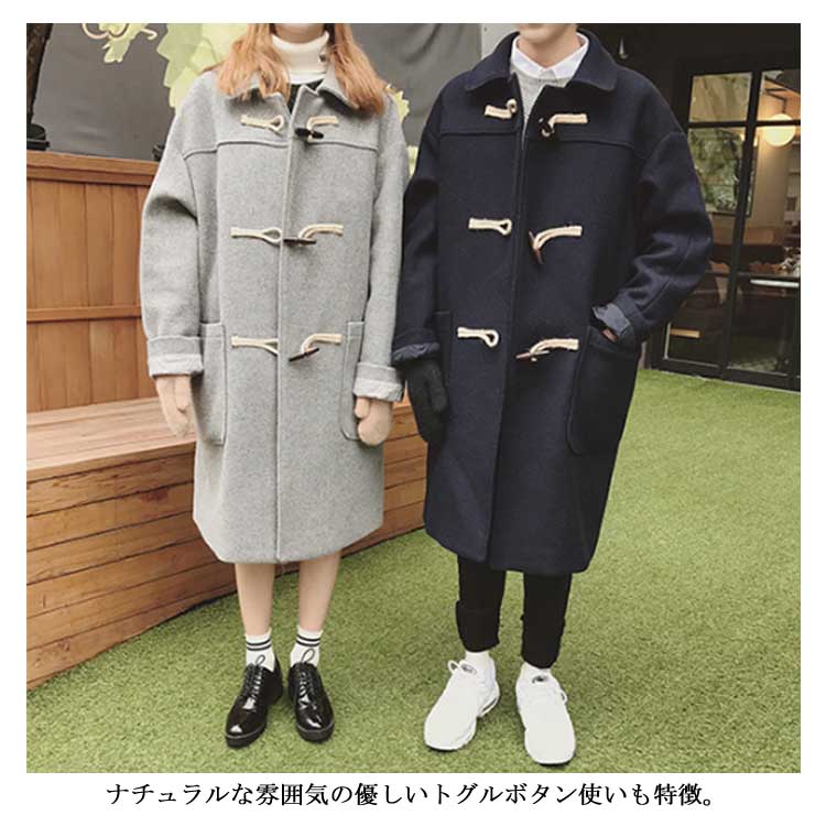 ダッフルコート 男女兼用 ロングダッフルコート ダッフル コート ロング アウター ベアルック ユニセックス ゆったり 通勤 通学 冬物 冬服 秋冬 ウール入り