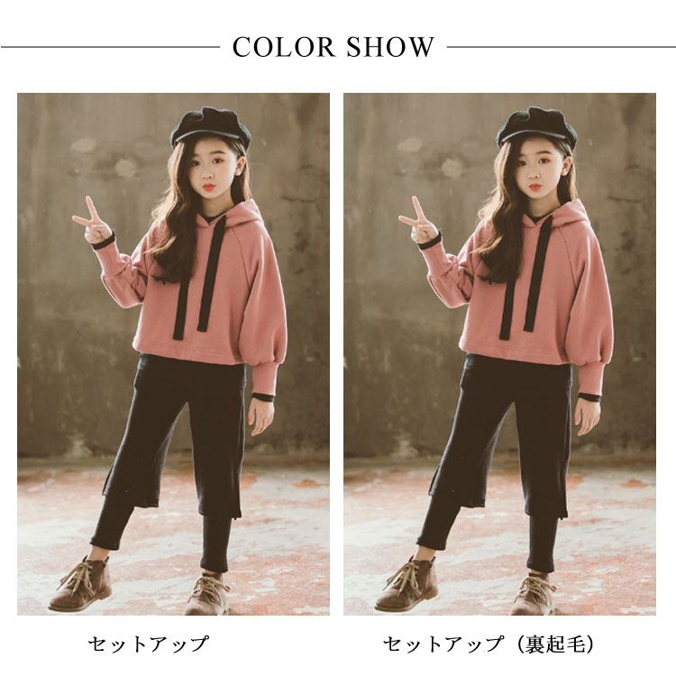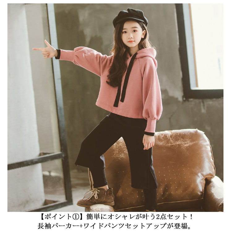 [裏起毛あり/なし]長袖パーカー/ワイドパンツ セットアップ トレーナー スポーティー スウェット キッズ 女の子 スポーツ ジュニア レッスン 普段着 子供服 こども 子ども 新作