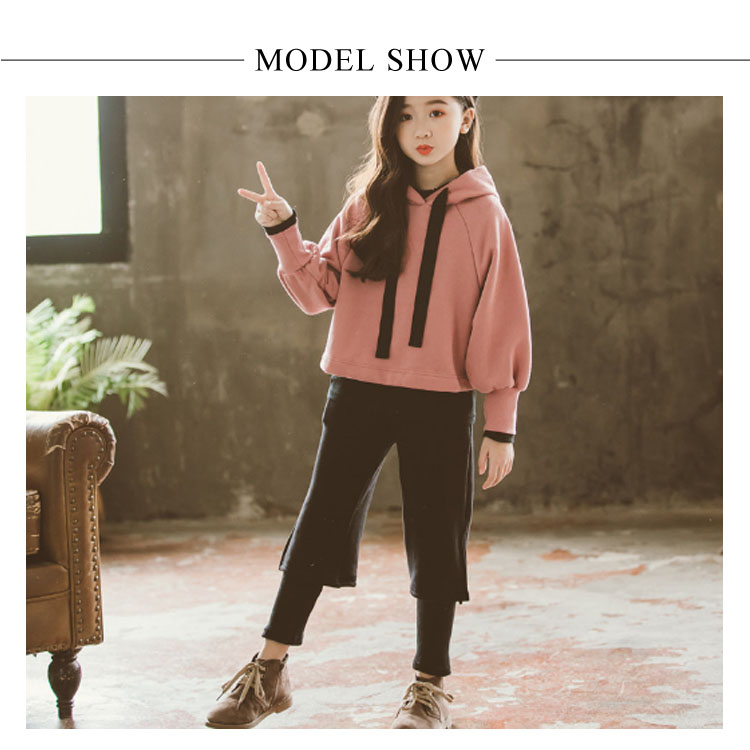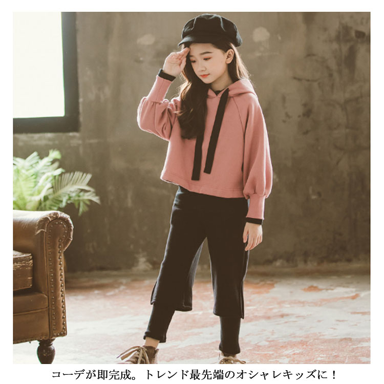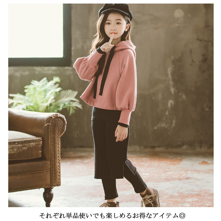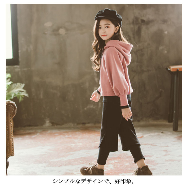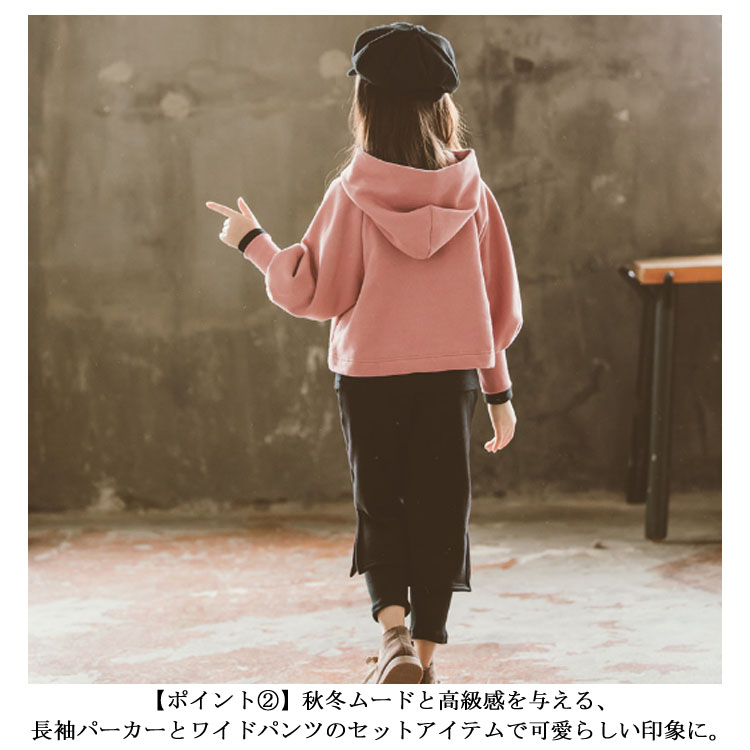 | 長袖パーカー+ワイドパンツセットアップ♪ シンプルなデザインで、好印象。 それぞれ単品使いでも楽しめるお得なアイテム◎ コーデが即完成。トレンド最先端のオシャレキッズに! | |