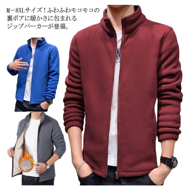 M-8XLサイズ!フリースジャケット メンズ 立ち襟ジャケット フリース パーカー アウター ジャケット 裏ボア ボアジャケット ジップアップ カジュアル 無地 暖かい 秋冬 冬服 大きサイズ