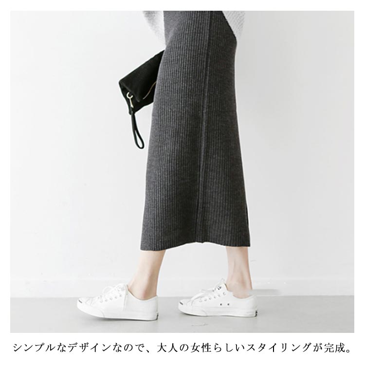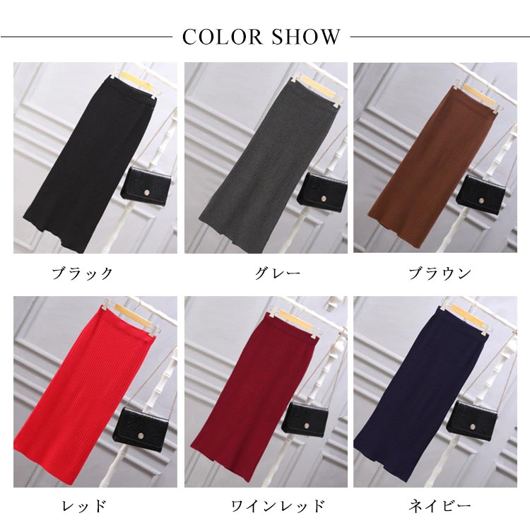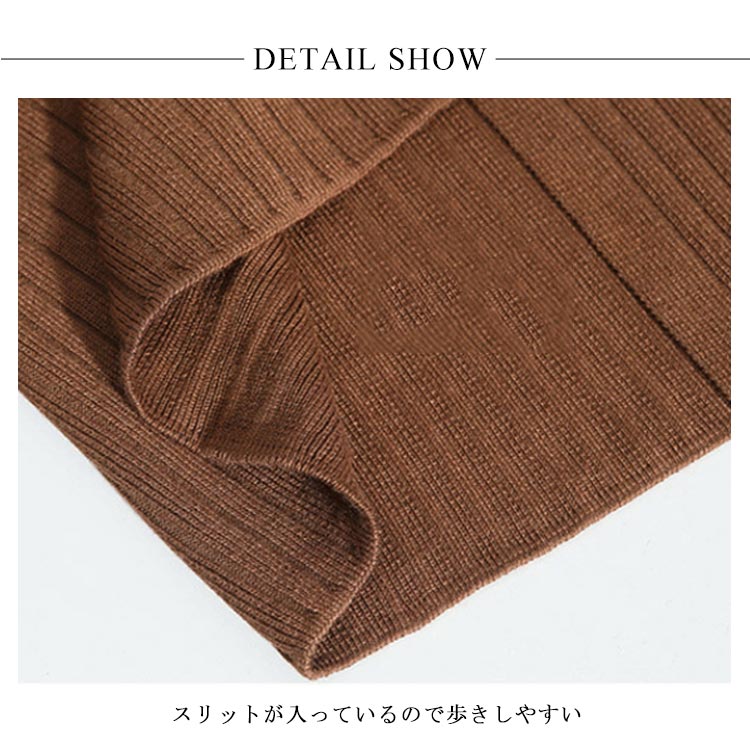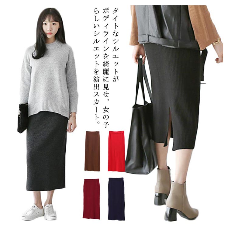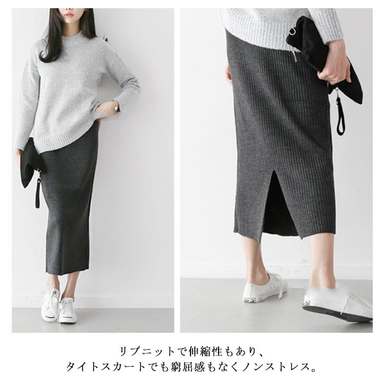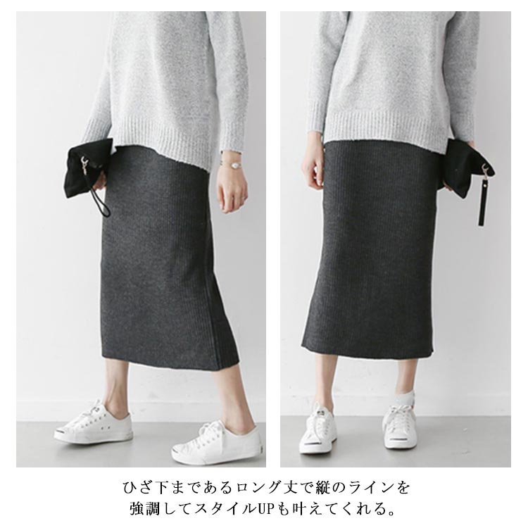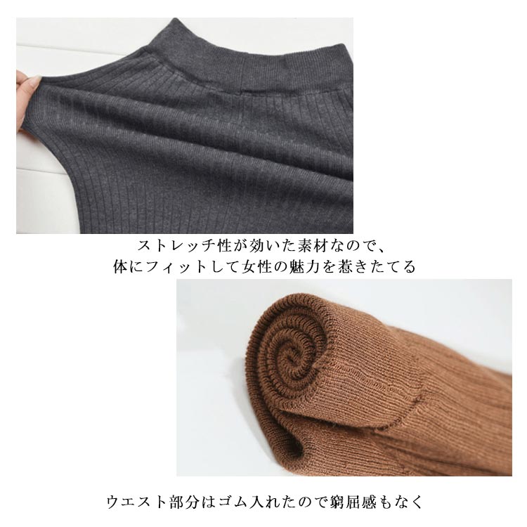 ニットスカート ロング タイトスカート スリットスカート リブ編み ストレッチ ペンシルスカート ミモレ丈 H型スカート フェミニンスカート カジュアル 膝丈 ボトムス オシャレ 着痩せ