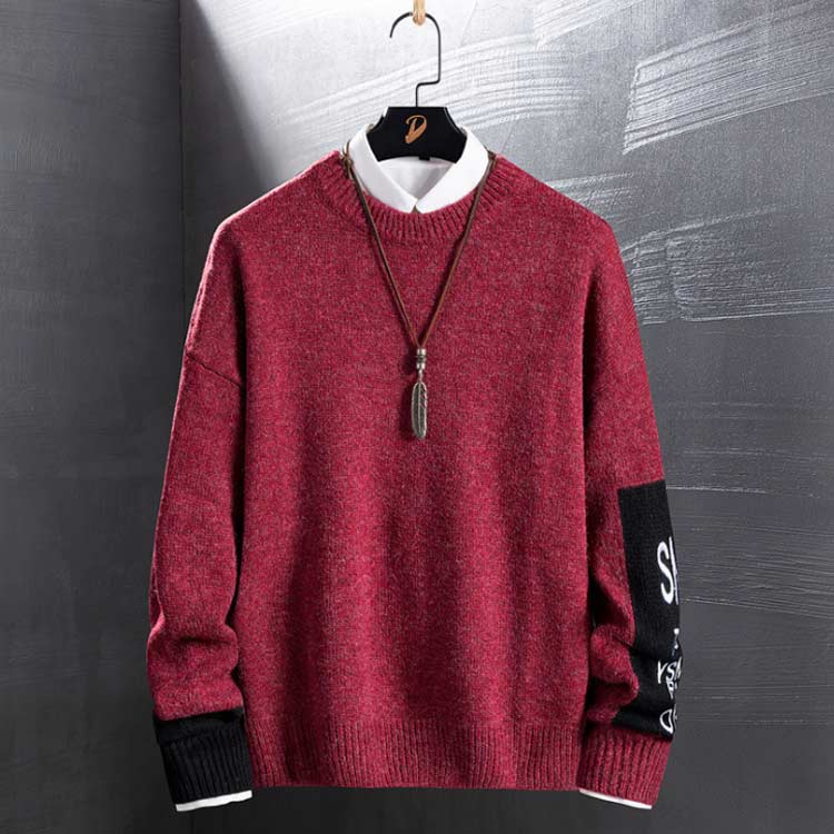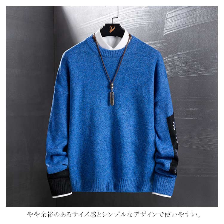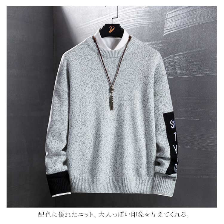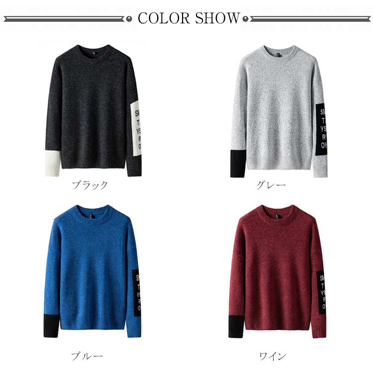 ニットセーター メンズ 長袖 メンズ トップス セーター プルオーバー 配色 クルーネック 大きサイズ メンズファション カジュアル