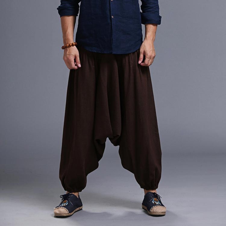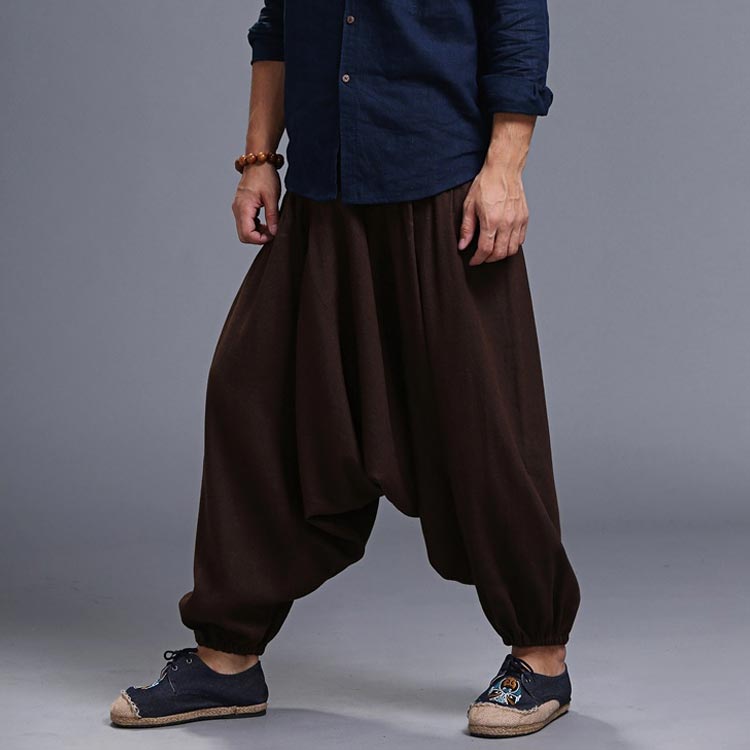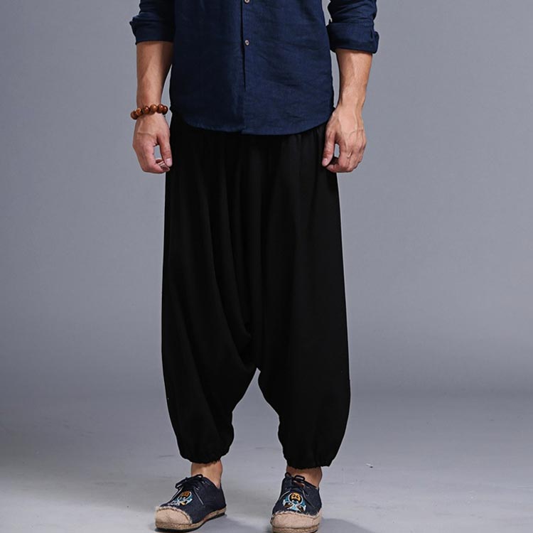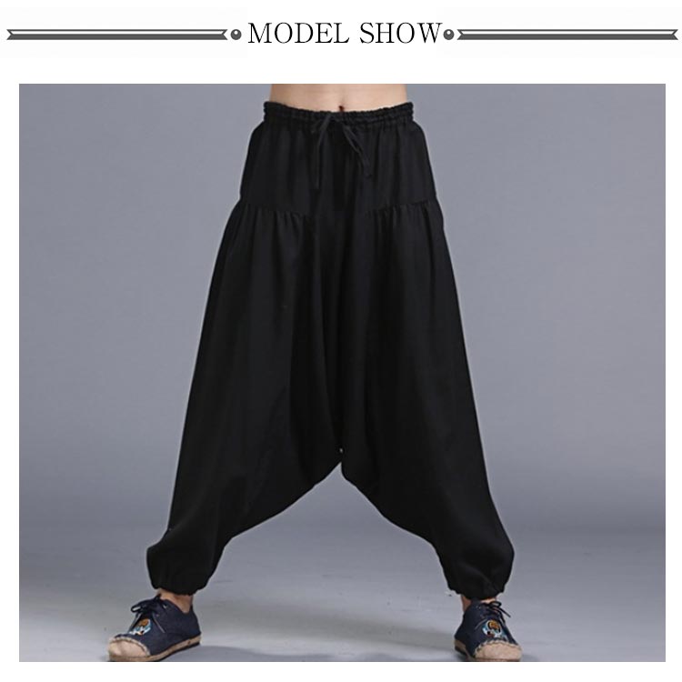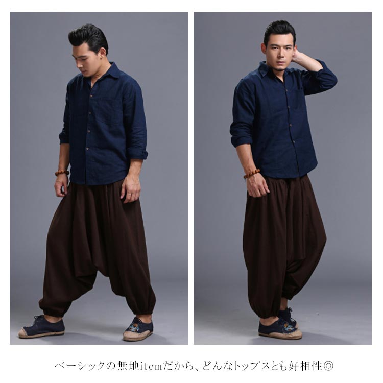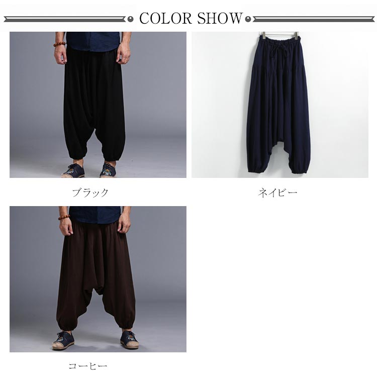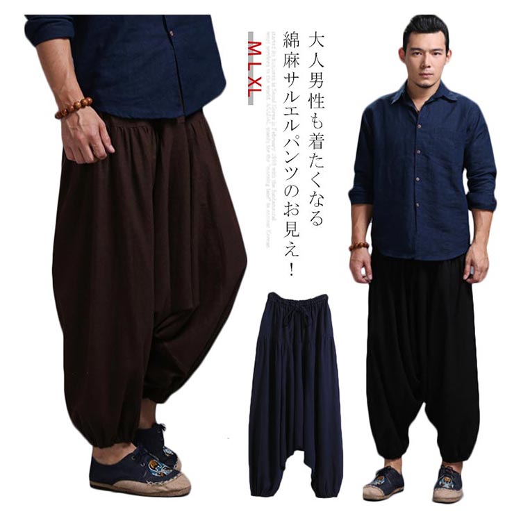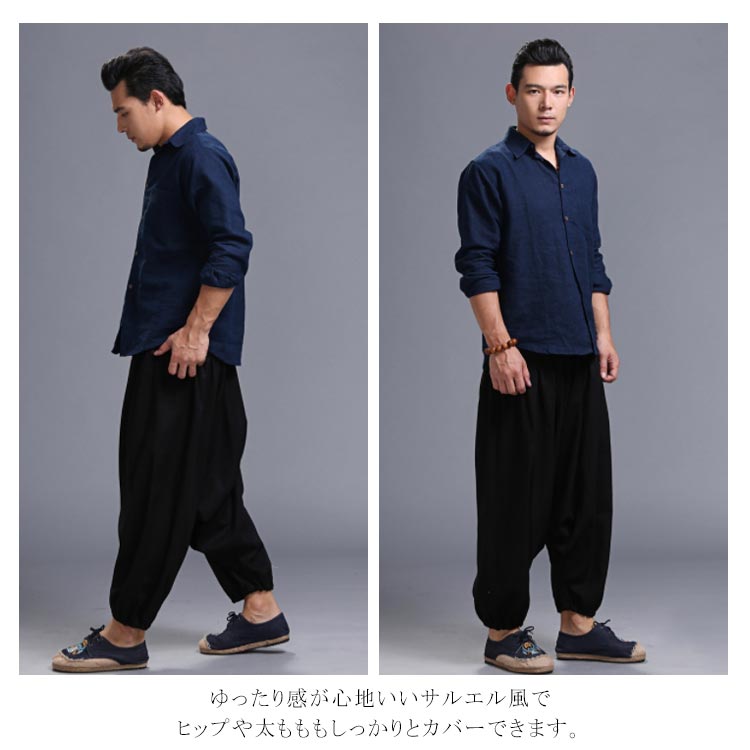 サルエルパンツ メンズ ロングパンツ メンズ ワイドパンツ ロング丈 ボトムス サルエル ウエストゴム 綿麻混 カジュアル お洒落 春夏