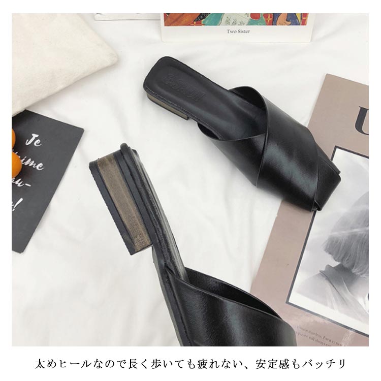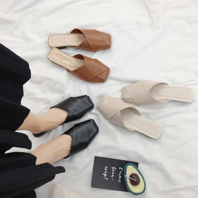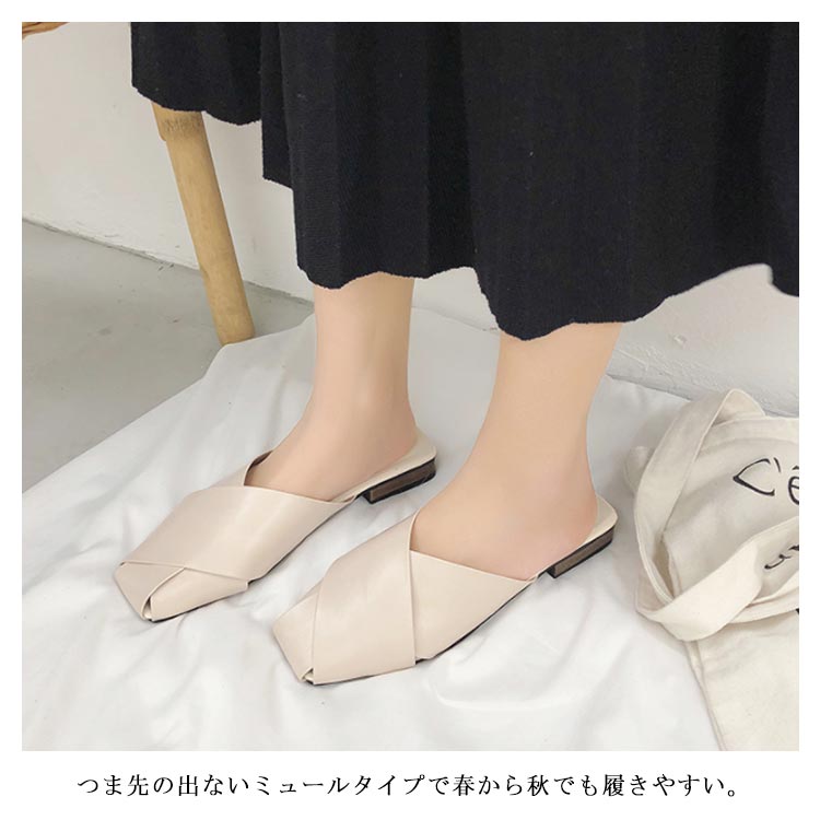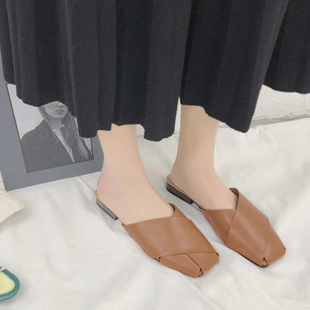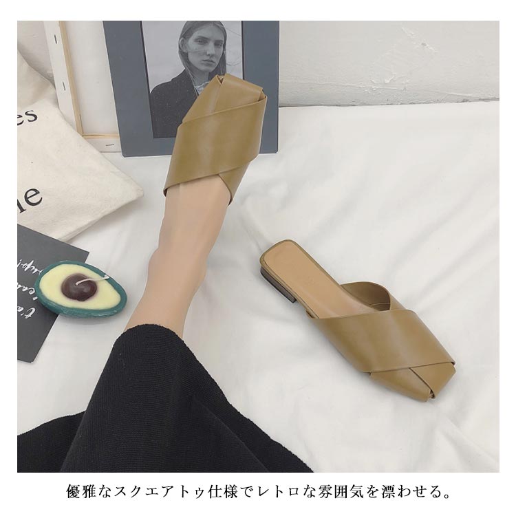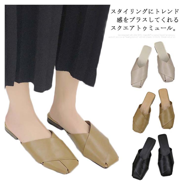 ミュール ぺたんこ レディース ローヒール フラットヒール スクエアトゥ ローファー スリッポン サンダル 履きやすい 歩きやすい 大きいサイズ 大人 おしゃれ きれいめ
