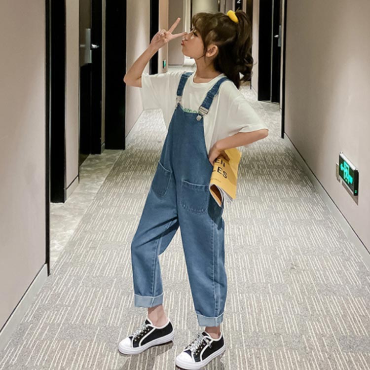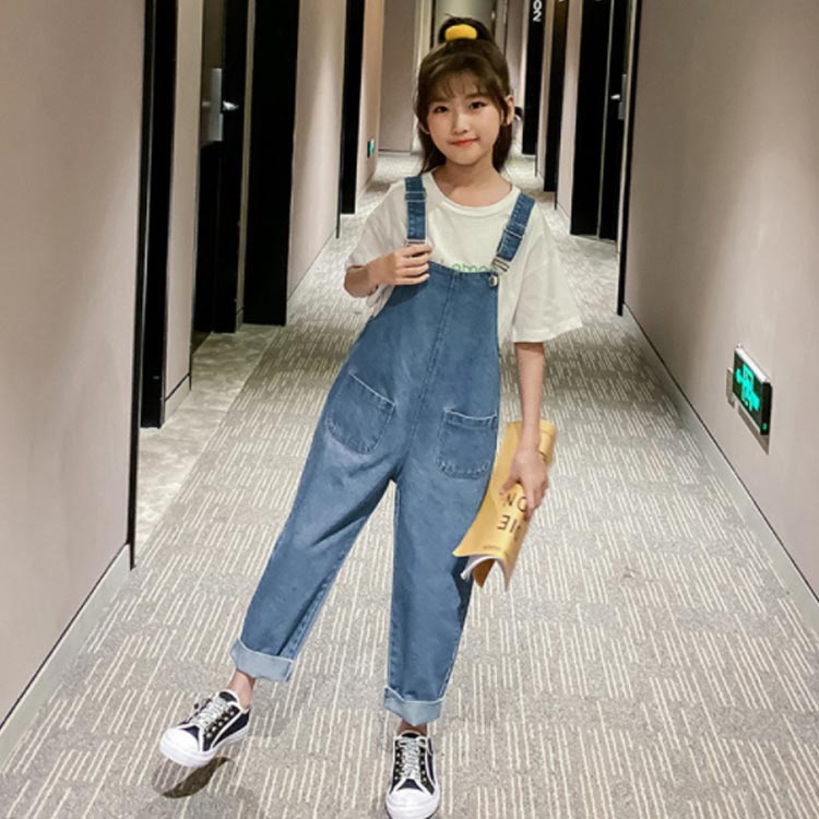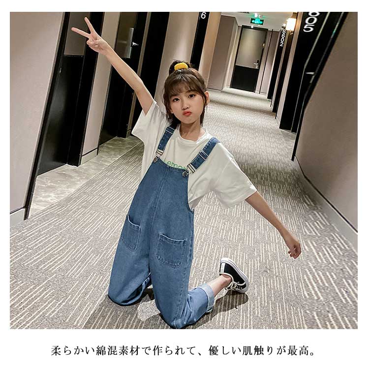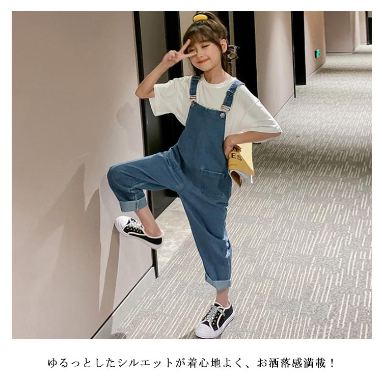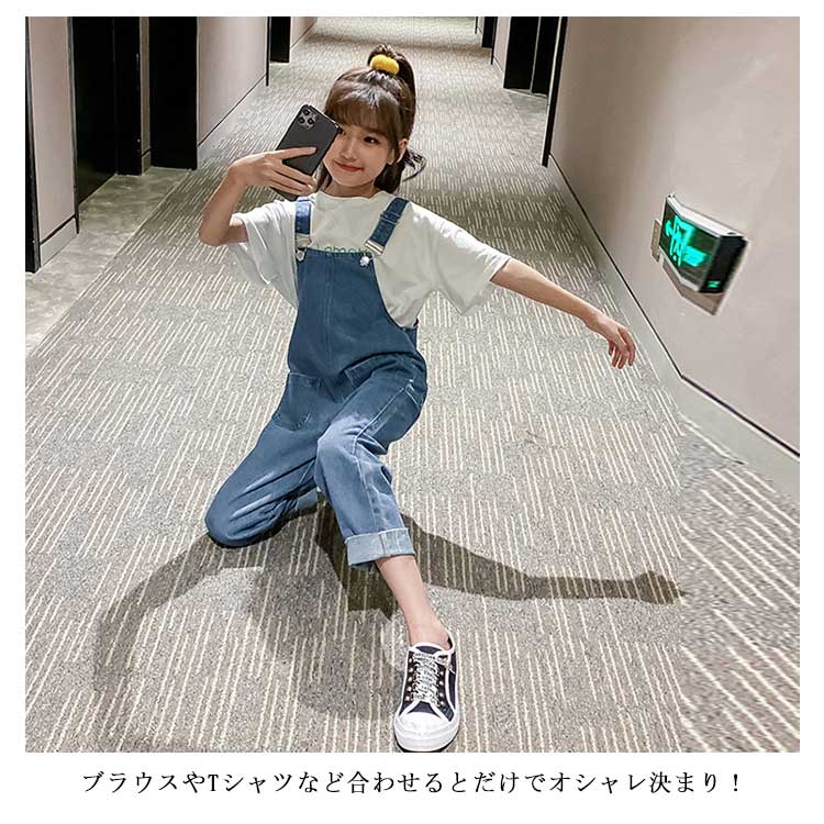 オーバーオール キッズ デニム サロペットパンツ ジュニア 女の子 韓国ファション シンプル 無地 ロングパンツ 子供服 ジーンズ 110 120 130 140 150 160 170 春 夏