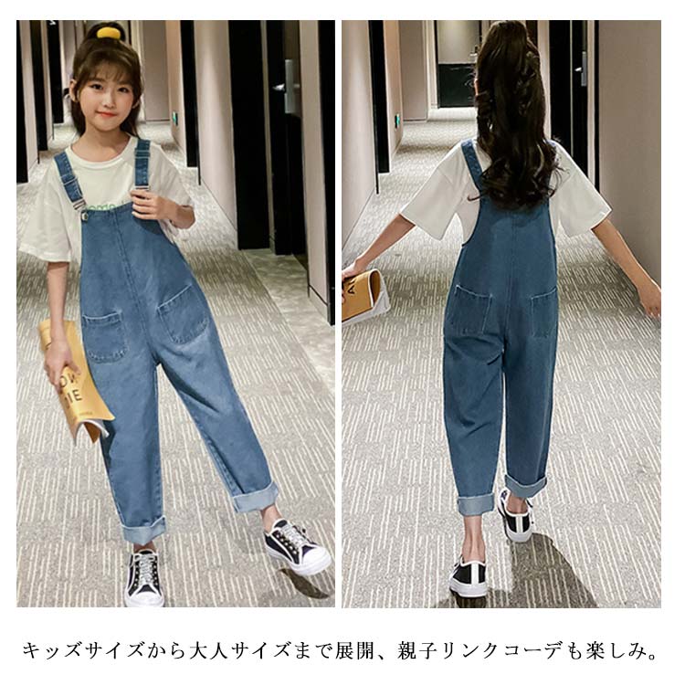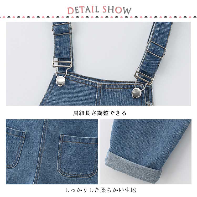 | ゆったり感が凄く可愛い女の子デニムサロペットパンツ。 ゆるっとしたシルエットが着心地よく、お洒落感満載! ブラウスやTシャツなど合わせるとだけでオシャレ決まり! 季節に合ったトップスを合わせて、夏、春、秋、ロングシーズン着れちゃう。 柔らかい綿混素材で作られて、優しい肌触りが最高。 キッズサイズから大人サイズまで展開、親子リンクコーデも楽しみ。 | |