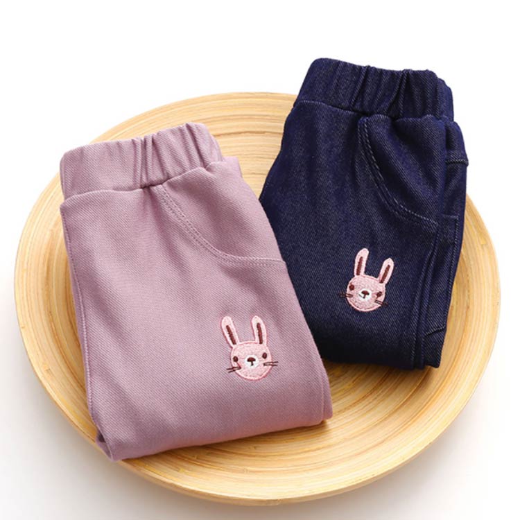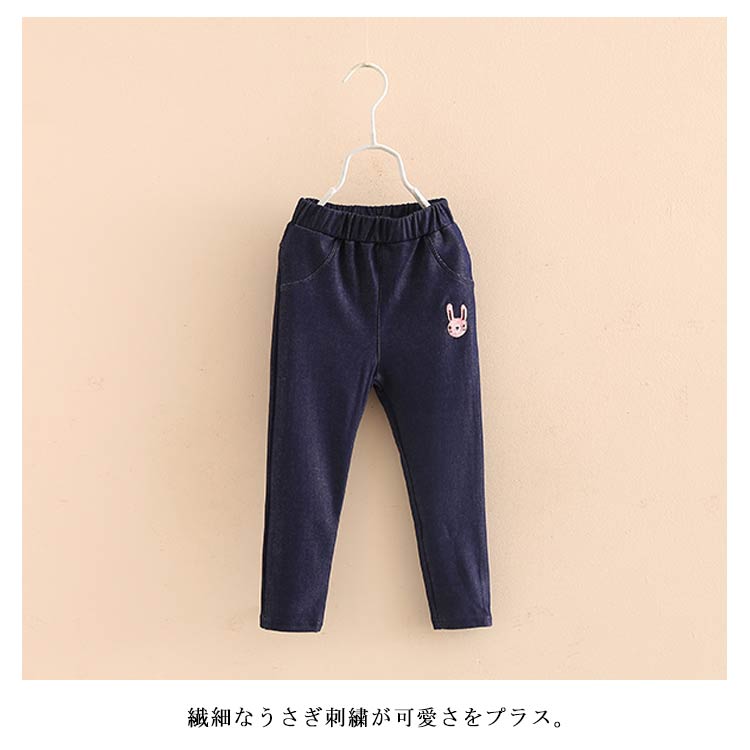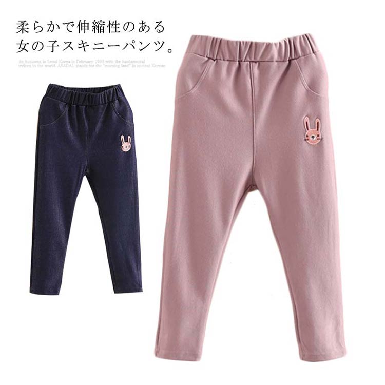 キッズ スキニーパンツ ロングパンツ 送料無料 女の子 うさぎ 刺繍 可愛い 子供服 ストレッチ デニム風 パンツ 長ズボン 春秋 100 110 120 130 140