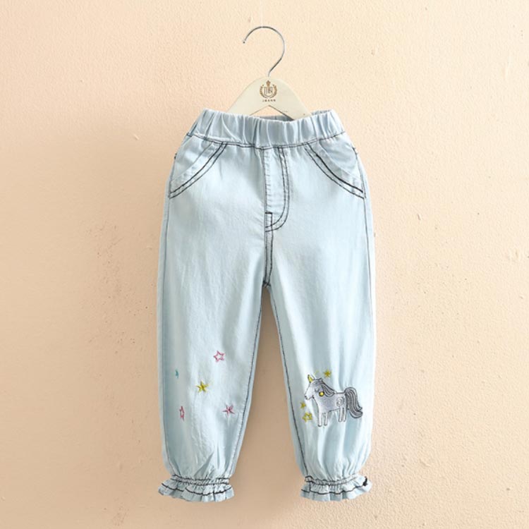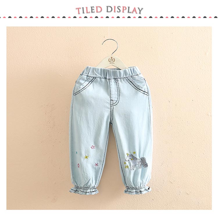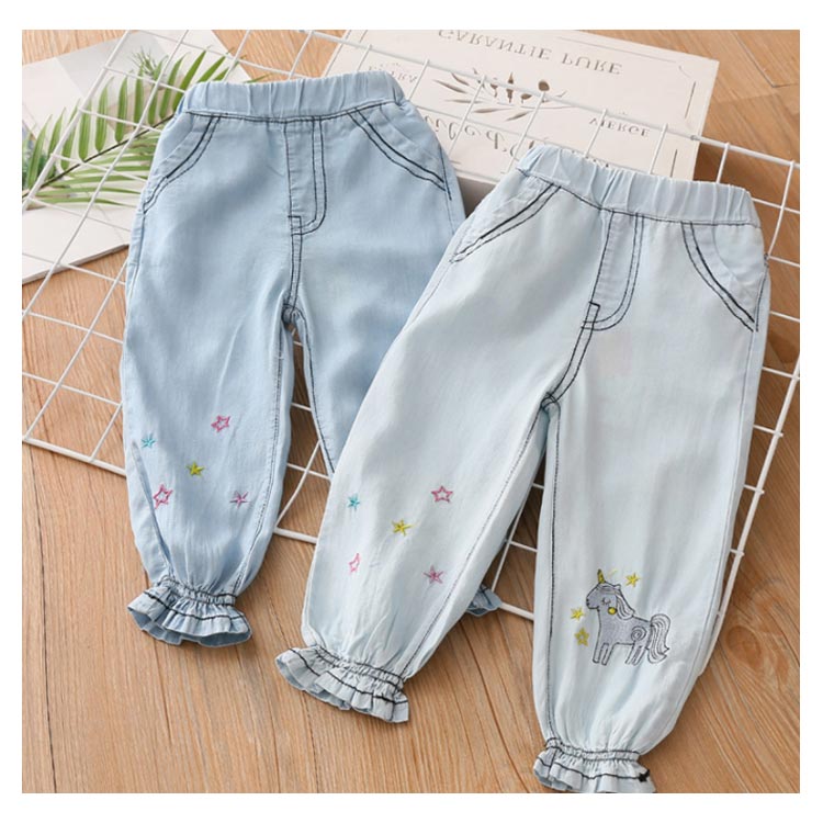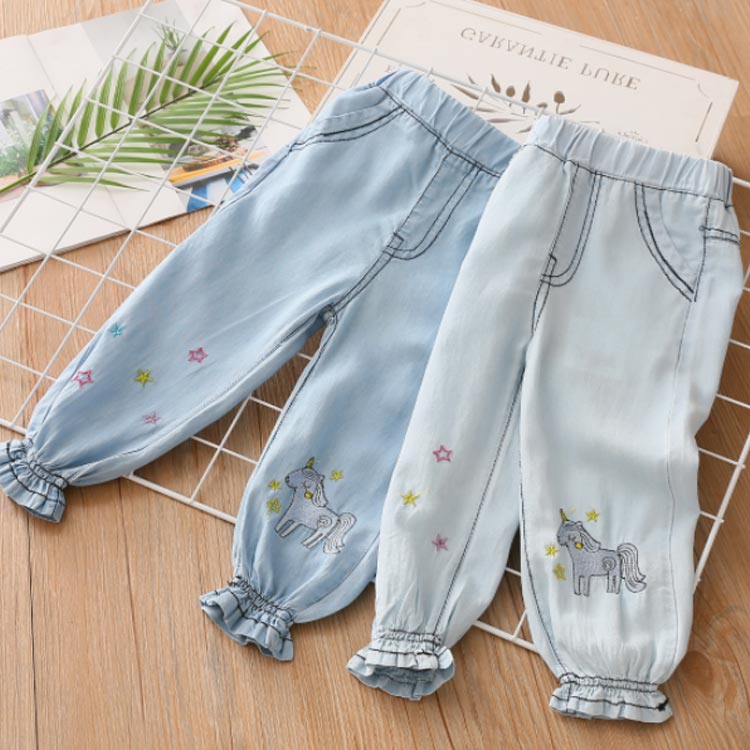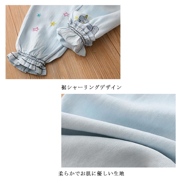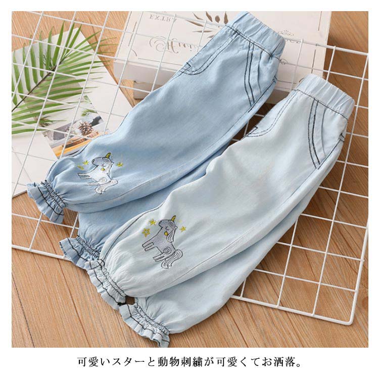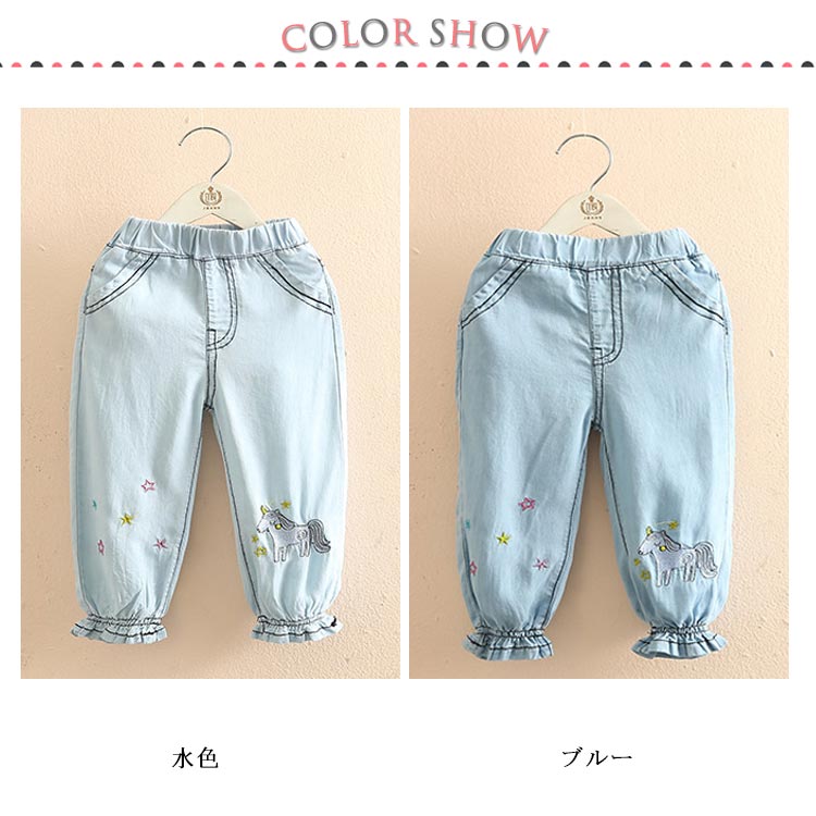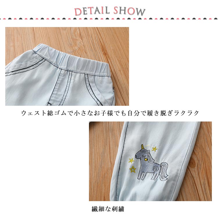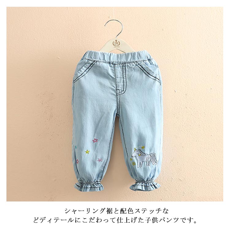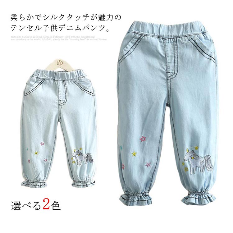 テンセルデニム キッズ デニムパンツ 送料無料 女の子 子供服 ロングパンツ ジョガーパンツ フリル 柔らかい 星 ユニコーン 刺繍 夏 春 90 100 110 120 130 140