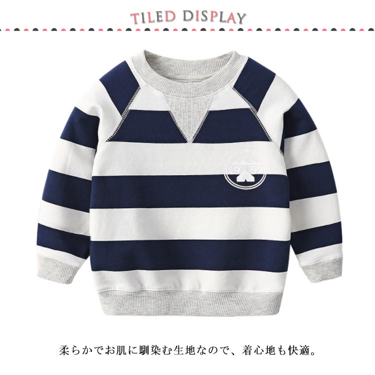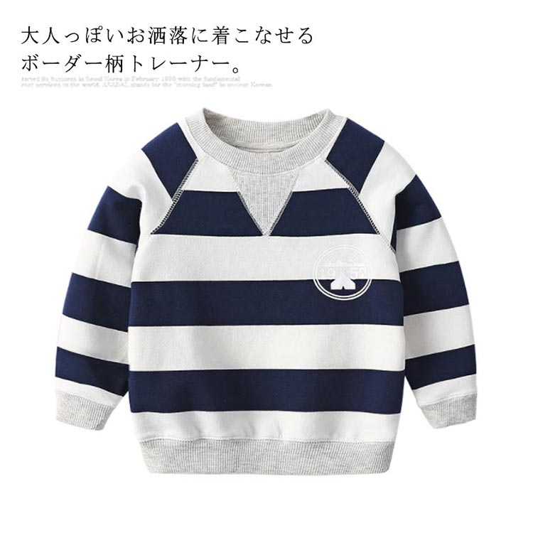 男の子 トレーナー スウェット 送料無料 太ボーダー カットソー 長袖 トップス パーカー クルーネック キッズ 子供服 春秋 90 100 110 120 130 140