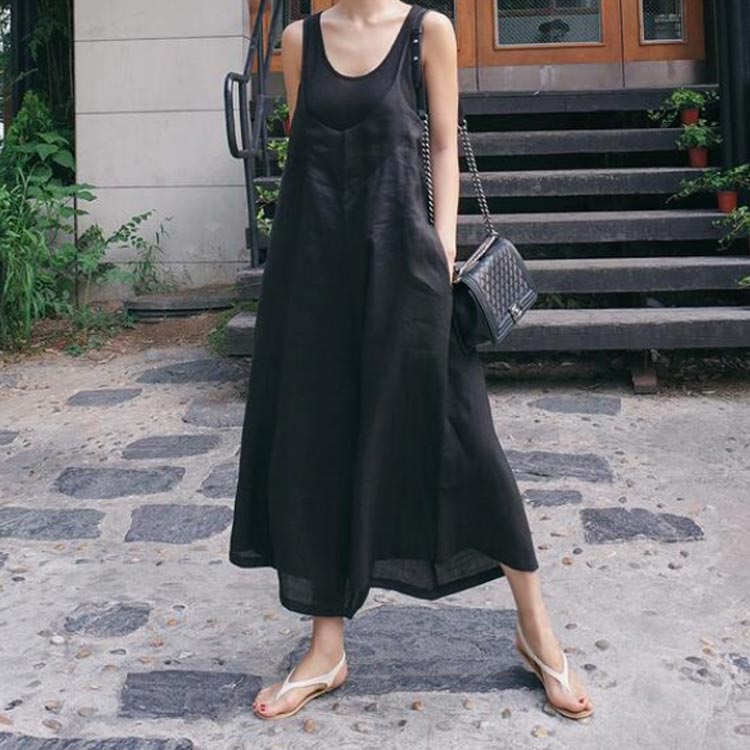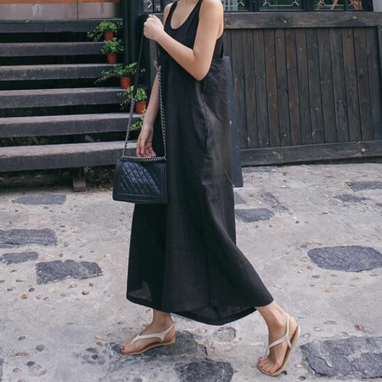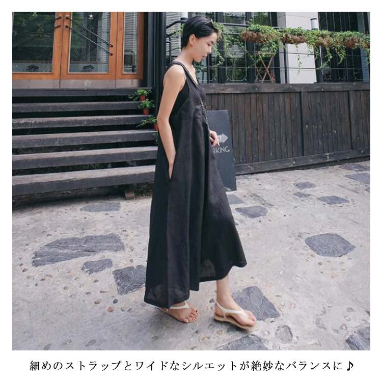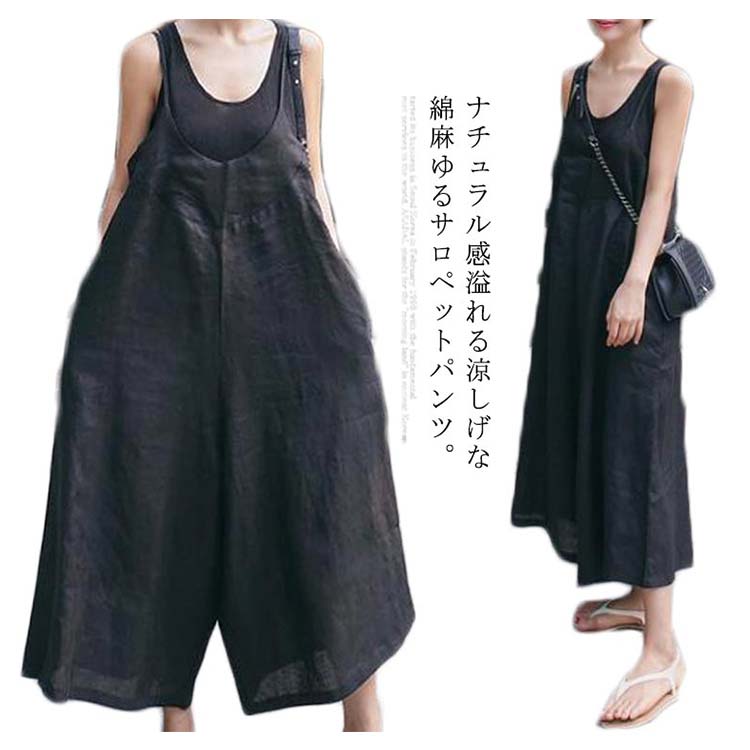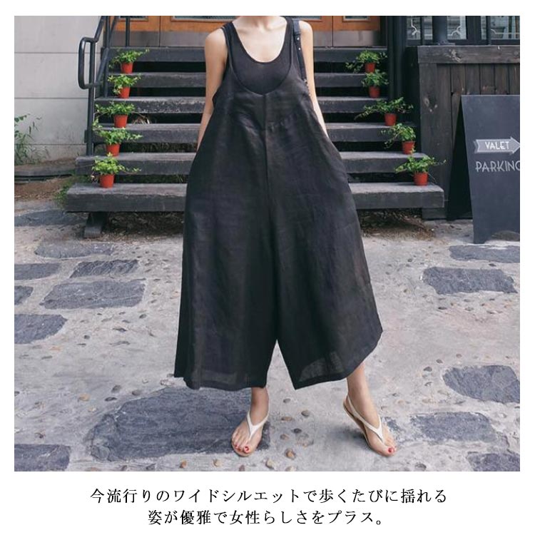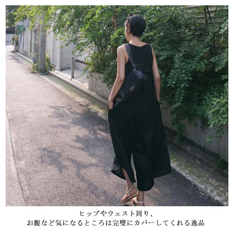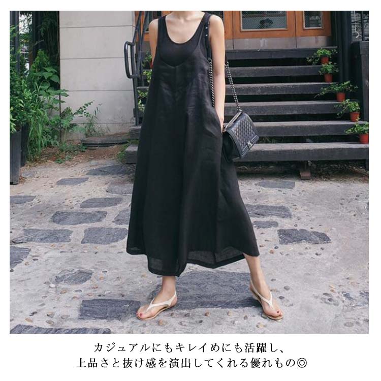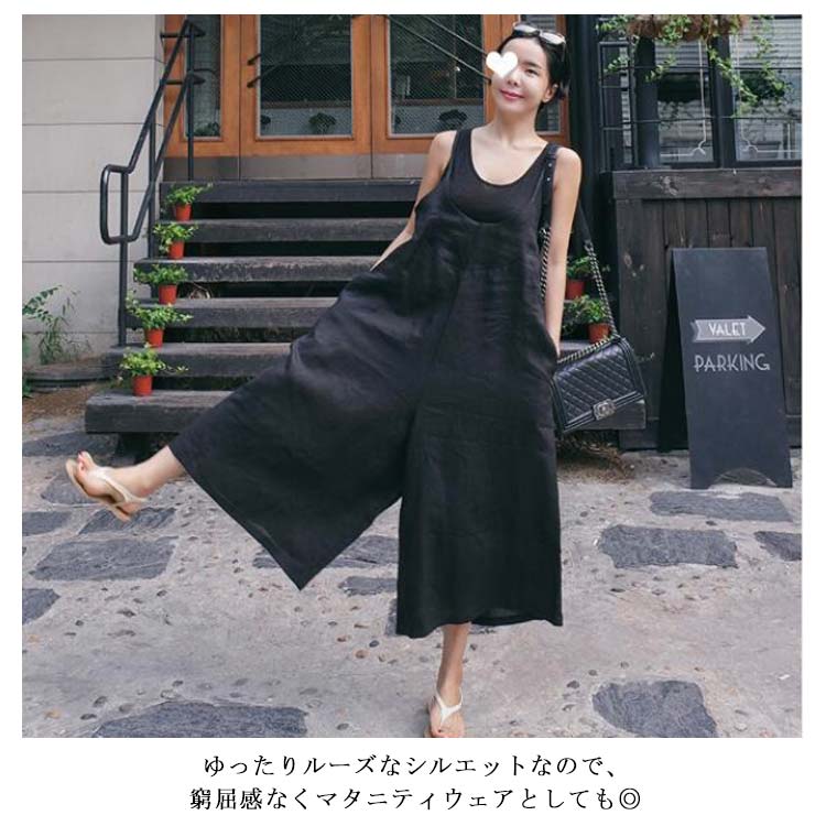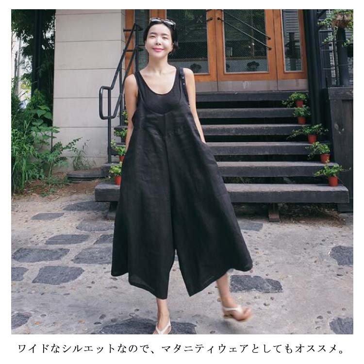 コンビネゾン 送料無料 リネン ワイドパンツ ゆるサロペット スカーチョ キャミソール オーバーオール 無地 薄手 夏 9分丈 マタニティ