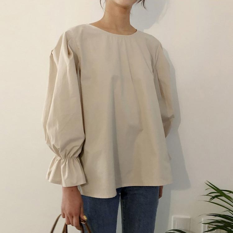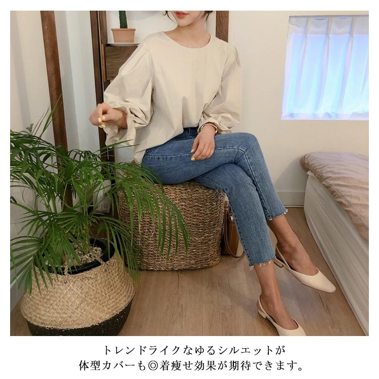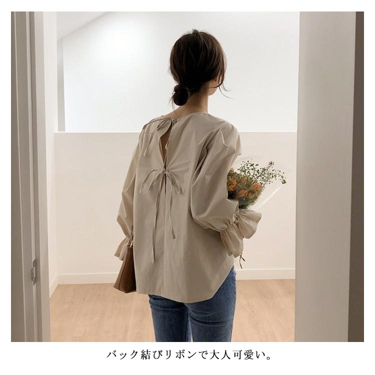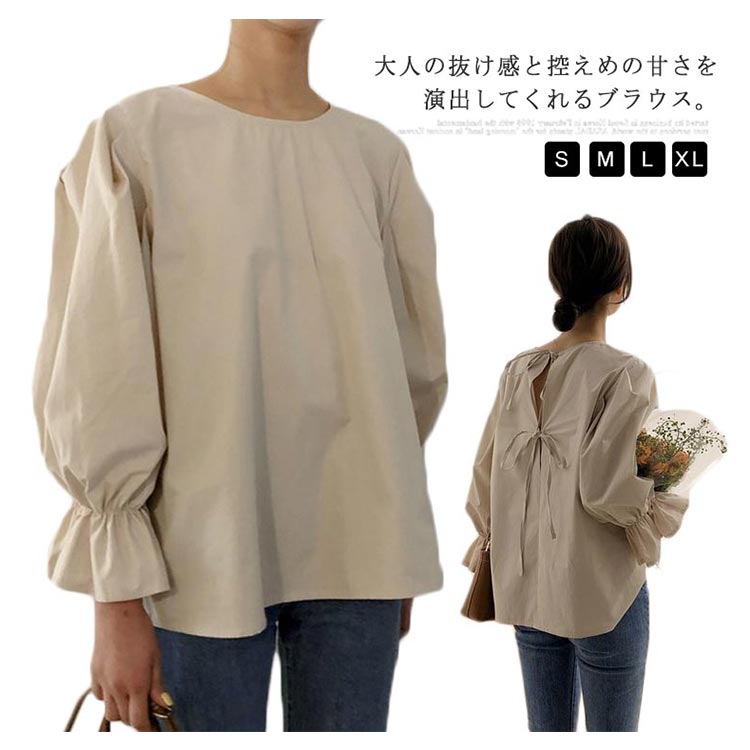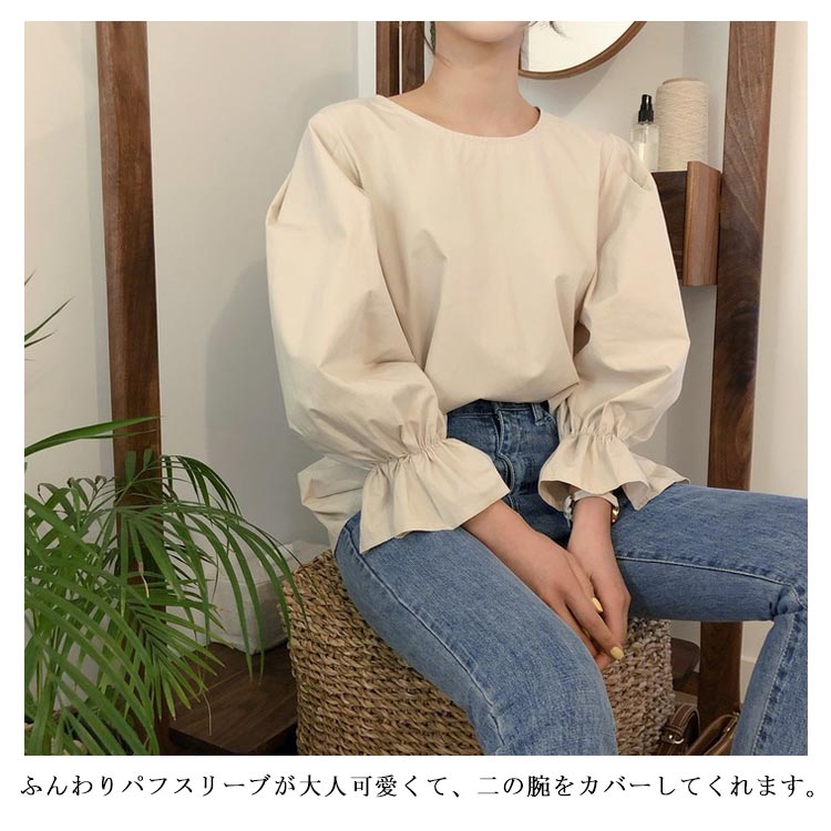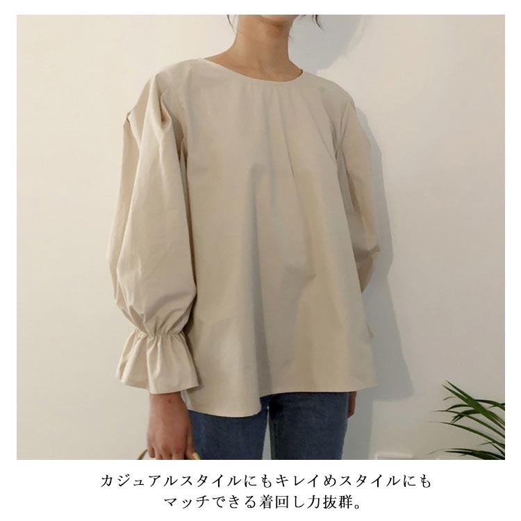 ブラウス 送料無料 レディース ゆる トップス 長袖 無地 パフスリーブ 体型カバー プルオーバー フレア 韓国ファッション カーリー 20代 30代 40代