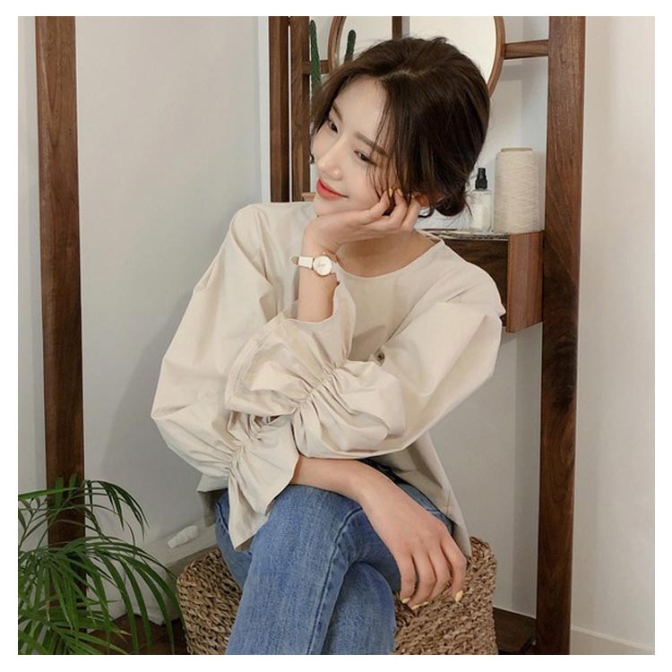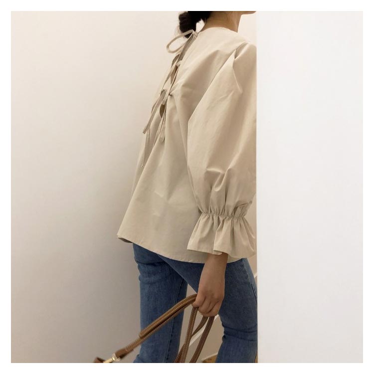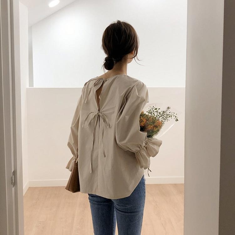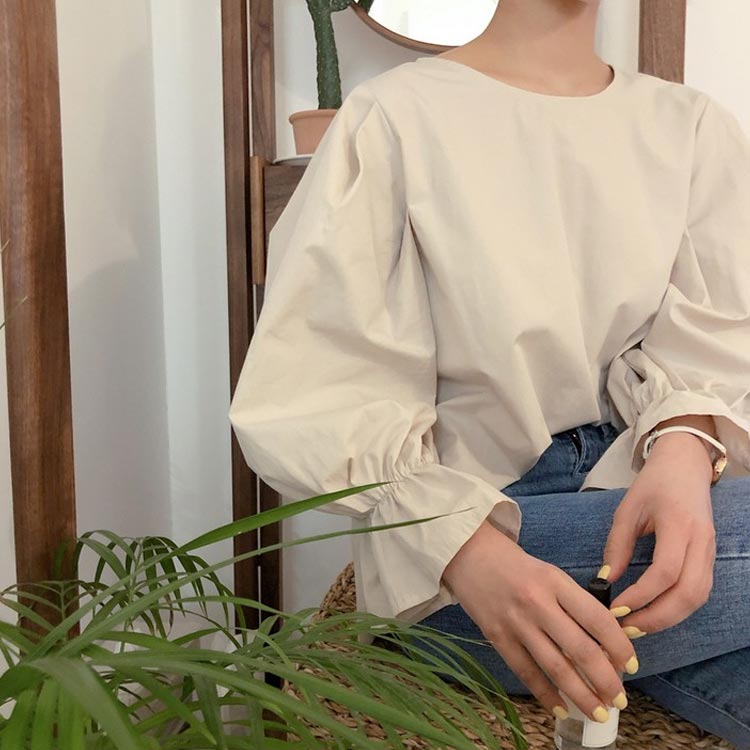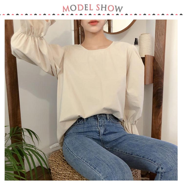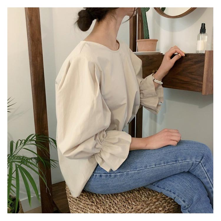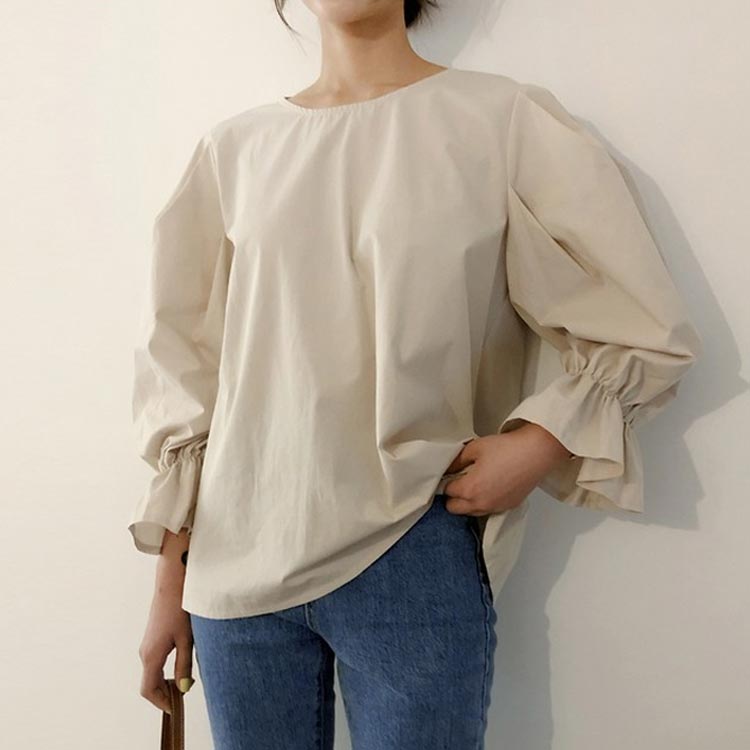 ブラウス 送料無料 レディース ゆる トップス 長袖 無地 パフスリーブ 体型カバー プルオーバー フレア 韓国ファッション カーリー 20代 30代 40代