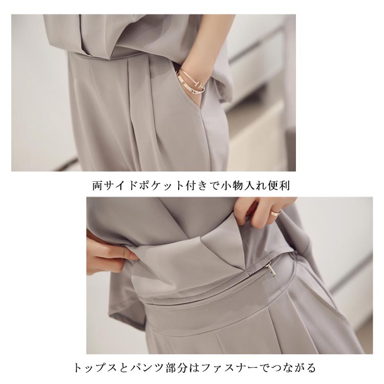 | 結婚式、パーティー、入卒園式、お宮参りに 優雅な大人女性を演出してくれるパンツドレス。 お腹周りや太ももなど気になるところはカバーし、着痩せ効果バツグン。 トップス部分はカシュクール風のノーカラーデザインで、大人のフェミニン◎ 一見オールインワンに見えますが、トップス部分とボトム部分は別々で分けれるからとても便利。 ビジネスシーンや通勤にもオススメです。 | |